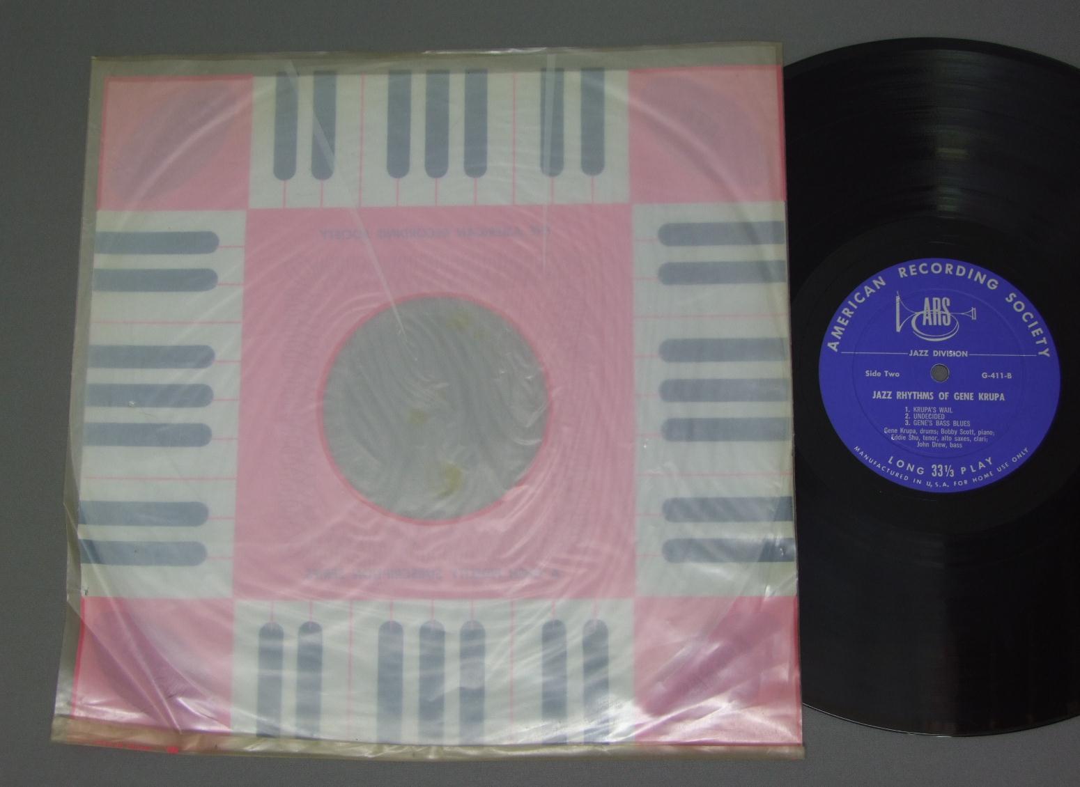 GENE KRUPA /JAZZ RHYTHMS OF GENE KRUPA G411 製造国:米国盤 / Media:LP外観:EX-盤の状態:EX- 価格(税込):¥5,762(売約済) 送料 7inch:定形外郵便 360円~LP:定形外郵便 660円~送料は、注文の最終画面で確認頂けます。 レコード検索 > 1980s–90s > GENE KRUPA /JAZZ RHYTHMS OF GENE KRUPA 外観 (EX-)特記事項:AMERICAN RECORDING SOCIETYのビニールのスリーブは多少スレやスリキズ、ヨレやよごれ等有ります。外観EX-の共通説明:ダメージ軽度~多少。 中古品としては普通の状態。シミ、ヨゴレ、スレなど軽く~多少。 盤の状態 (EX-)特記事項:A1、A2に軽プチ出そうな線キズ2本有りますが、モノ針ならあまり気にならない程度のソフトプチでした。他薄いスリキズ・細かい表面スレ軽度で一見して中々きれいな感じです。盤EX-の共通説明:盤面のスリキズが多少有り。音に出そうなものは殆ど無いように見える~さほど気にならないぐらいの軽いプチ数カ所程度。 その他:※画像では確認できない、上下ヘリ、背表紙、取り出し口を中心に状態表記しております。画像で確認出来る表裏ジャケ、レーベルの状態表記は省いている場合がありますので、そちらの状態は画像でご確認をお願い致します。携帯の方は一度PC等で写真をご確認の上ご入札下さいますよう、お願い申し上げます。 Tweet それぞれの画像をクリックすると、大きい写真が見られます こちらの商品もお勧めです 4,400円 BUD FREEMAN`S ALL STAR ORCHESTRA / MIDNIGHT AT EDDIE CONDON`S 3,850円 BOB TOMPSON / ON THE ROCKS 3,300円 CREOLE JAZZ BAND / KID ORY`S 2,640円 WILD BILL DAVISON / RUNNING WILDサイン付 2,420円 JAZZ ALL STARS / MIDNIGHT AT EDDIE CONDON`Sサイン付 3,300円 KIRBY STONE FOUR / KIRBY STONE TOUCH 2,420円 WILD BILL DAVISON / ALL STARSサイン付 2,420円 WILD BILL DAVISON / WITH FREDDY RANDALL & HIS BANDサイン付