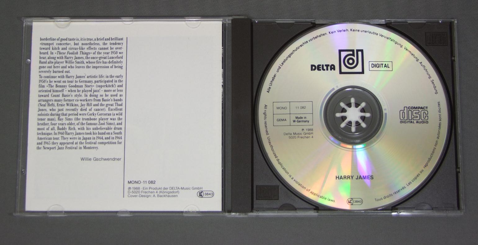 HARRY JAMES AND HIS ORCHESTRA/ALL TIME STANDARDS 1938-1954 11082 製造国:独盤 / Media:CD外観:EX+盤の状態:EX+ 価格(税込):¥550 送料 7inch:定形外郵便 360円~LP:定形外郵便 660円~送料は、注文の最終画面で確認頂けます。 > > HARRY JAMES AND HIS ORCHESTRA/ALL TIME STANDARDS 1938-1954 外観 (EX+)特記事項:ブックレット・タイプの英語解説付ジャケ。全体的にあまりめくりヨレなど無く、よごれも少ないきれいな状態。外観EX+の共通説明:中古としては美品、一見してきれいでダメージが軽微。シミ、ヨゴレ、スレ有っても僅か~少し。 盤の状態 (EX+)特記事項:微細なスリキズが少々。きれいな感じの盤面です。盤EX+の共通説明:盤面の極薄いスリキズ、スレ少し程度 音に出そうなものは無いように見える(極軽微なソフトティック音は除く)。 Tweet それぞれの画像をクリックすると、大きい写真が見られます こちらの商品もお勧めです 2,200円 MARC LEVIN AND HIS FREE UNIT / DRAGON SUITE 1,650円 TOSHIYUKI HONDA本田俊之 / SHANGRI-LAシャングリア(楽園)