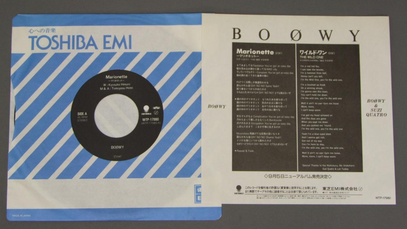 BOOWY/MARIONETTEマリオネット WTP17980 製造国:日本盤 / Media:7inch外観:EX+盤の状態:EX+ 価格(税込):¥440(売約済) 送料 7inch:定形外郵便 360円~LP:定形外郵便 660円~送料は、注文の最終画面で確認頂けます。 > > BOOWY/MARIONETTE 外観 (EX+)特記事項:底スレが少し。ジャケ表面は全体的にヨレやよごれは無い感じ。外観EX+の共通説明:中古としては美品、一見してきれいでダメージが軽微。シミ、ヨゴレ、スレ有っても僅か~少し。 盤の状態 (EX+)特記事項:極薄いスリキズ・スレ少しだけ。一見してきれいな状態です。盤EX+の共通説明:盤面の極薄いスリキズ、スレ少し程度 音に出そうなものは無いように見える(極軽微なソフトティック音は除く)。 その他: ※画像では確認できない、上下ヘリ、背表紙、取り出し口を中心に状態表記しております。画像で確認出来る表裏ジャケ、レーベルの状態表記は省いている場合がありますので、そちらの状態は画像でご確認をお願い致します。携帯の方は一度PC等で写真をご確認の上ご入札下さいますよう、お願い申し上げます。 Tweet それぞれの画像をクリックすると、大きい写真が見られます こちらの商品もお勧めです 1,650円 KILLER MAYキラー・メイ / BYE BYE HIGH SCHOOLバイバイ・ハイスクール 1,320円 BROWN SUGARブラウン・シュガー / SEXY BROWN SUGAR 990円 44 MAGNUM / STREET ROCK`N ROLLERストリートロックンローラー 990円 44 MAGUNAM44 マグナム / DANGER MONEY 1,320円 EARTH SHAKER / OVER RUN w/POST CARDS 770円 BOW WOWバウワウ / BOW WOWバウワウ 1,980円 MODSモッズ / CORNER 1,320円 KERAケラ / RECORD PIC DISCピクチャー盤