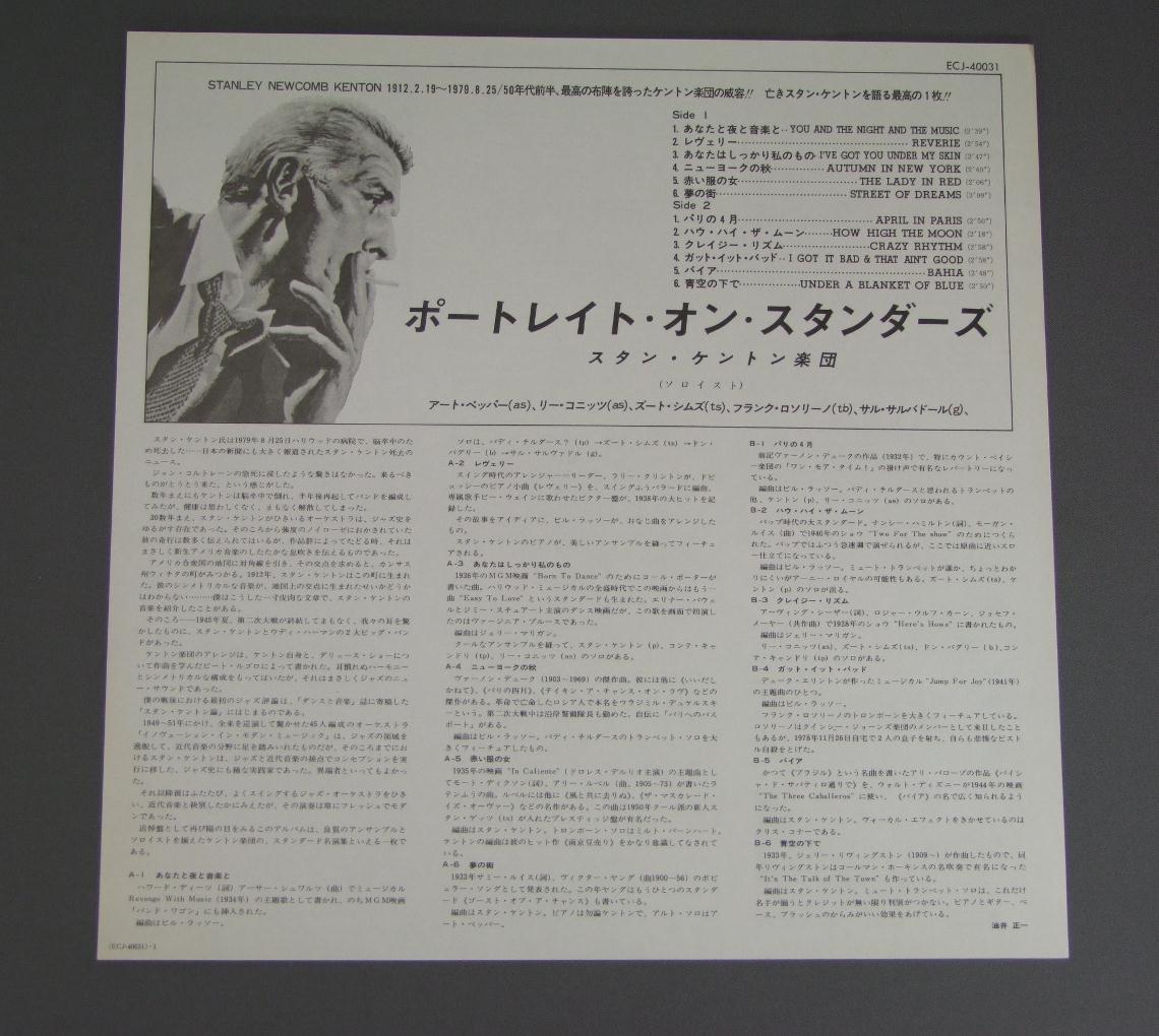 STAN KENTON/PORTRAITS ON STANDARDS ECJ40031 製造国:日本盤 / Media:LP外観:EX-盤の状態:EX 価格(税込):¥550(売約済) 送料 7inch:定形外郵便 360円~LP:定形外郵便 660円~送料は、注文の最終画面で確認頂けます。 レコード検索 > CLASSIC CHAMBER > STAN KENTON/PORTRAITS ON STANDARDS 外観 (EX-)特記事項:両面共背側に集中して経年風のシミや日焼け感が有りますが、ジャケ表面は全体的にスレやスリキズ等は薄い感じ。外観EX-の共通説明:ダメージ軽度~多少。 中古品としては普通の状態。シミ、ヨゴレ、スレなど軽く~多少。 盤の状態 (EX)特記事項:薄いスリキズ・スレ少しある程度。音に出そうなものもなく一見してきれいな状態です。盤EXの共通説明:盤面のスリキズが薄いものが少し~軽度 音に出そうなものは無いように見える(軽微なソフトティック音は除く)。 その他: ※画像では確認できない、上下ヘリ、背表紙、取り出し口を中心に状態表記しております。画像で確認出来る表裏ジャケ、レーベルの状態表記は省いている場合がありますので、そちらの状態は画像でご確認をお願い致します。携帯の方は一度PC等で写真をご確認の上ご入札下さいますよう、お願い申し上げます。 Tweet それぞれの画像をクリックすると、大きい写真が見られます こちらの商品もお勧めです 660円 EDDIE HEYWOOD / TOUCH OF EDDIE HEYWOOD 1,650円 NORIO MAEDA前田憲男 / SOUND IN VICTRONSOUND IN VICTRON 1,320円 QUINCY JONESクィンシー・ジョーンズ / THIS IS HOW I FEEL ABOUT JAZZ私の考えるジャズ 990円 FRANCES FAYEフランセス・フェイ / CAUGHT IN THE ACTコート・イン・ジ・アクト 1,320円 JACKIE McLEAN QUINTETジャッキー・マクリーン・クインテット / JACKIE McLEAN QUINTETJACIE McLEAN QUINTET 440円 GARY BURTON - SONNY ROLLINS - CLARK TERRYG.バートン - S.ロリンズ - C.テリー / 3 IN JAZZスリー・イン・ジャズ 770円 STANLEY CLARKE / JOURNEY TO LOVE 990円 YOSHIAKI MASUO増尾好秋 / SAILING WONDERセイリング・ワンダー