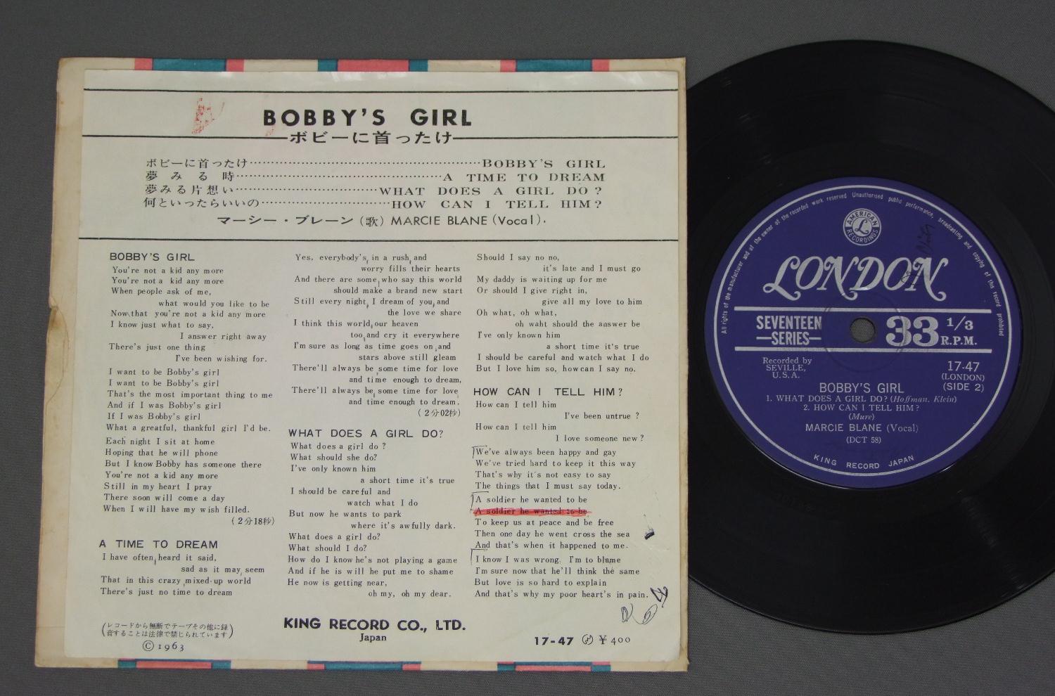 MARCIE BLANEマーシー・ブレーン/BOBBY`S GIRLボビーに首ったけ 4曲入 17-47 製造国:日本盤 / Media:7inch外観:VG盤の状態:EX- 価格(税込):¥990(売約済) 送料 7inch:定形外郵便 360円~LP:定形外郵便 660円~送料は、注文の最終画面で確認頂けます。 > > MARCIE BLANE/BOBBY`S GIRL 外観 (VG)特記事項:ヨレやスリキズ有り。裏側に書き込み。外観VGの共通説明:ダメージが見るからに多い。 盤の状態 (EX-)特記事項:薄いスリキズ・細かい表面スレ多少ある感じ。殆どが軽微なものの様子です。盤EX-の共通説明:盤面のスリキズが多少有り。音に出そうなものは殆ど無いように見える~さほど気にならないぐらいの軽いプチ数カ所程度。 その他:レーベルに書き込み ※画像では確認できない、上下ヘリ、背表紙、取り出し口を中心に状態表記しております。画像で確認出来る表裏ジャケ、レーベルの状態表記は省いている場合がありますので、そちらの状態は画像でご確認をお願い致します。携帯の方は一度PC等で写真をご確認の上ご入札下さいますよう、お願い申し上げます。 Tweet それぞれの画像をクリックすると、大きい写真が見られます こちらの商品もお勧めです 1,210円 VENTURES / BEST OF THE VENTURES vol.2 RED VINYL赤盤 990円 RICK NELSONリック・ネルソン / ALBUM SEVEN BY RICKアルバム・セブン・バイ・リック 770円 ELVIS PRESLEYエルヴィス・プレスリー / ELVIS-THAT`S THE WAY IT ISこの胸のときめきを -MGM映画 エルヴィス・オン・ステージ 主題歌集 770円 WANDA JACKSONワンダ・ジャクスン / WANDA JACKSON COUNTRY !ワンダ・ジャクスン・カントリー 990円 VENTURESベンチャーズ / ON STAGE ENCOREオン・ステージ・アンコール 770円 ELVIS PRESLEYエルヴィス・プレスリー / ELVIS VOL2 A LEGENDARY PERFORMER + BOOKLETエルヴィス・プレスリーの歴史 VOL2 990円 ELVISエルヴィス / THIS IS ELVIS-SELECTIONS FROM THE ORIGINAL MOTION PICUTRE SOUNDTRACK映画 THIS IS ELVIS オリジナル・サウンドトラック 880円 LETTERMENレターメン / LOVE BOOK愛の世界