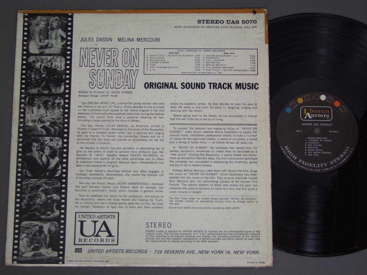 SOUND TRACK NEVER ON SUNDAY/ UAS5070 製造国:米国盤 / Media:LP外観:VG+盤の状態:EX 価格(税込):¥1,257(売約済) 送料 7inch:定形外郵便 360円~LP:定形外郵便 660円~送料は、注文の最終画面で確認頂けます。 レコード検索 > CLASSIC CHAMBER > SOUND TRACK NEVER ON SUNDAY/ 外観 (VG+)特記事項:背はヨレやよごれ多少有り。割れも少し。上下ヘリスレ有り。背下で折れ跡。ジャケ表面は薄いスレよごれやや有り。裏ジャケはスレも多少有り。表ジャケの左下にスレ剥がれ有り。外観VG+の共通説明:ダメージやや有り。シミ、ヨゴレ、スレなど多少~やや多め。 盤の状態 (EX)特記事項:薄いスリキズ・スレ軽くある感じ。プチ出そうな所は少しだけで、ほとんどが軽微なものの様子です。盤EXの共通説明:盤面のスリキズが薄いものが少し~軽度 音に出そうなものは無いように見える(軽微なソフトティック音は除く)。 その他: ※画像では確認できない、上下ヘリ、背表紙、取り出し口を中心に状態表記しております。画像で確認出来る表裏ジャケ、レーベルの状態表記は省いている場合がありますので、そちらの状態は画像でご確認をお願い致します。携帯の方は一度PC等で写真をご確認の上ご入札下さいますよう、お願い申し上げます。 Tweet それぞれの画像をクリックすると、大きい写真が見られます こちらの商品もお勧めです 1,980円 COLE PORTERコール・ポーター / SOUNDTRACK HIGH SOCIETY上流社会 770円 VA / MET STARS IN HOLLYWOOD 1,540円 MICHEL LEGRANDミッシェル・ルグラン / SOUNDTRACK SUMMER OF 42おもいでの夏 770円 ELMER BERNSTEIN / ORIGINAL SOUNDTRACK RECORDING-THE TEN COMMANDMENTS 880円 PIERRE BERTIN JEAN-PAUL ROUSSILON / LES FOURBERIES DE SCAPINスカパンのわるだくみ 550円 BILL COSBY / BILL COSBY HIMSELF 880円 ALFRED NEWMAN / HOW THE WEST WAS WON 1,650円 DIMITRI TIOKINディミトリー・ティオムキン / SOUNDTRACK ALAMOアラモ