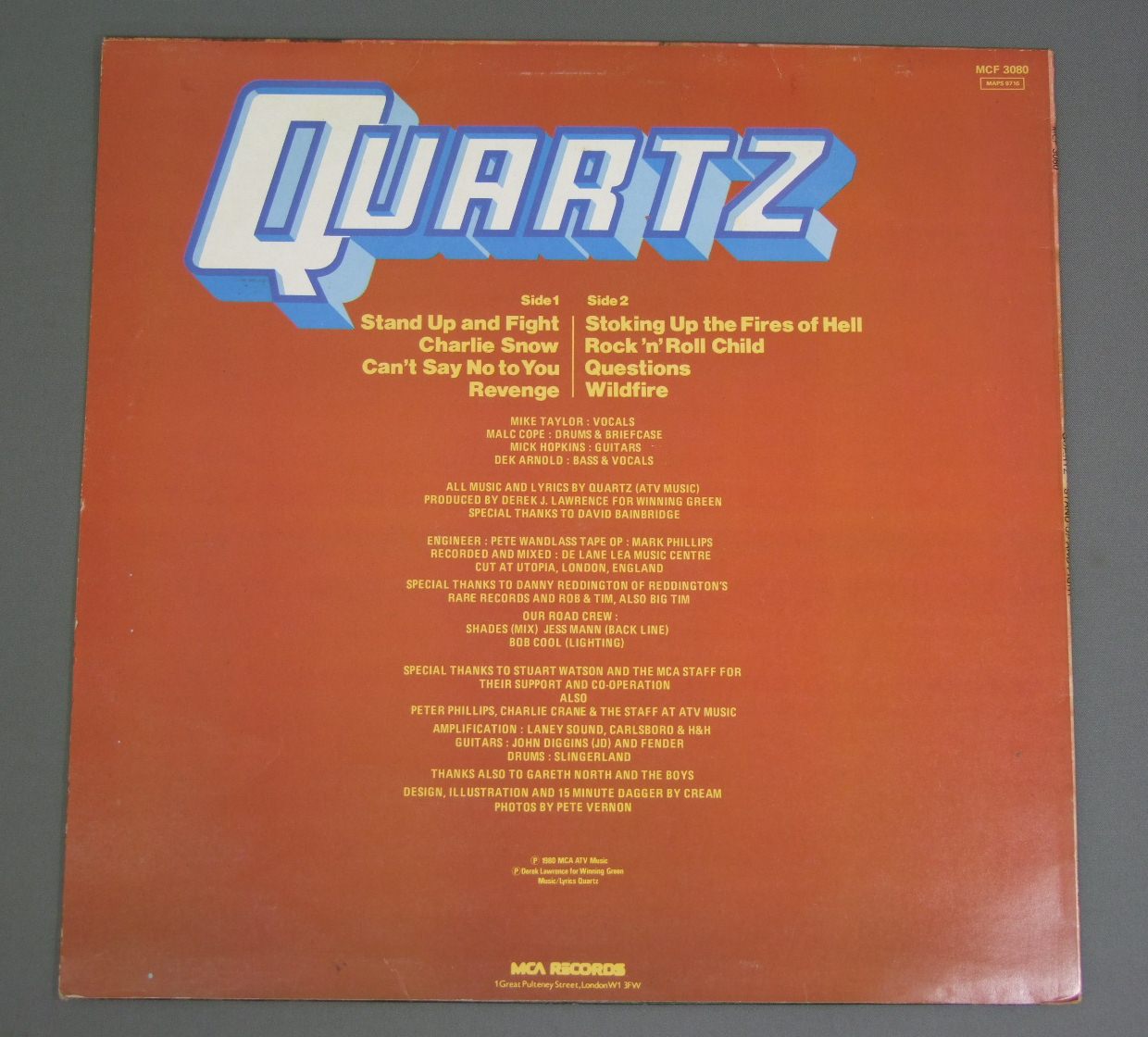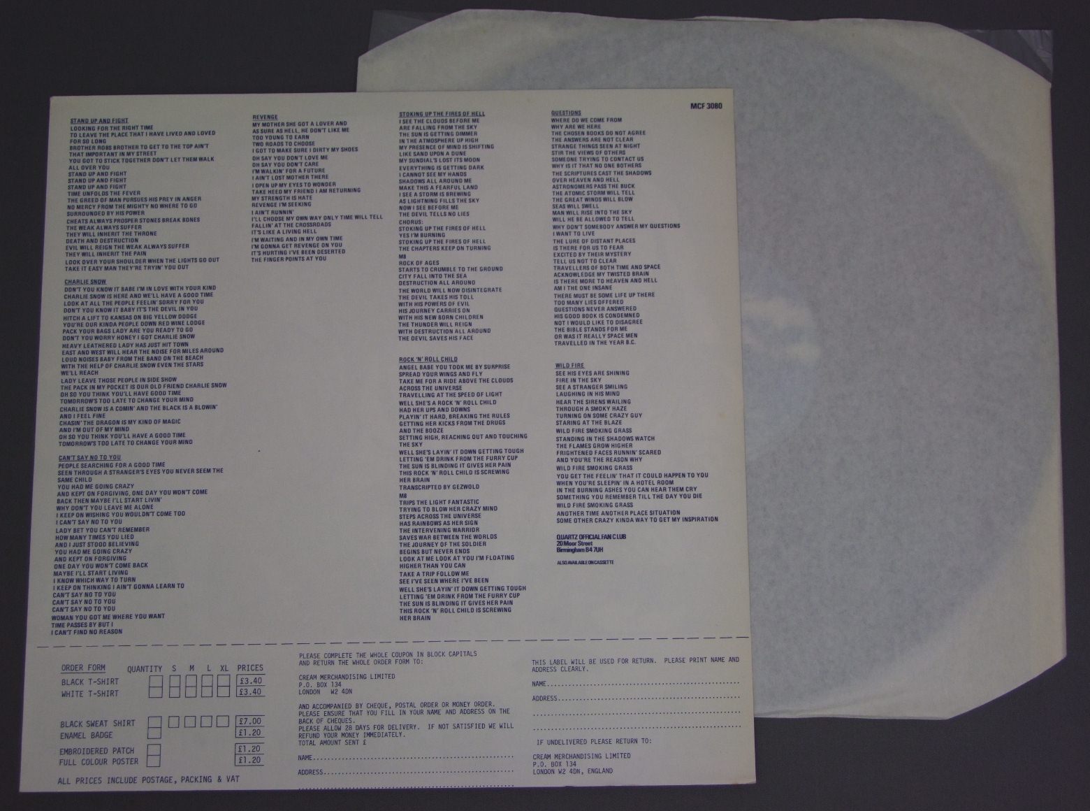 QUARTZ/STAND UP AND FIGHT MCF3080 製造国:英国盤 / Media:LPMatrix:A2 | B1 手書き風外観:EX盤の状態:EX 価格(税込):¥5,500(売約済) 送料 7inch:定形外郵便 360円~LP:定形外郵便 660円~送料は、注文の最終画面で確認頂けます。 レコード検索 > 全てのジャンル > QUARTZ/STAND UP AND FIGHT 外観 (EX)特記事項:ジャケ表面は全体的にスレやスリキズ、よごれ等は薄い感じ。外観EXの共通説明:ダメージが限定的。中古品としては保存状態がよい方。シミ、ヨゴレ、スレ 少し~軽度。 盤の状態 (EX)特記事項:極薄いスリキズ・スレ少し。一見してきれいな状態です。曲間など、静かなところを中心に聴いてみましたが、チリプチ少ないきれいな再生具合でした。盤EXの共通説明:盤面のスリキズが薄いものが少し~軽度 音に出そうなものは無いように見える(軽微なソフトティック音は除く)。 Tweet それぞれの画像をクリックすると、大きい写真が見られます こちらの商品もお勧めです 5,500円 SCORPIONS / TAKEN BY FORCE 3,850円 SILVERWING / LIVE AND KICKING 2,420円 MICHAEL SCHENKER GROUP / ROCK WILL NEVER DIE 5,500円 DUST SPRINGFEILD / GIRL CALLED DUSTY 7,700円 SLEDGEHAMMER / BLOOD ON THEIR HANDS