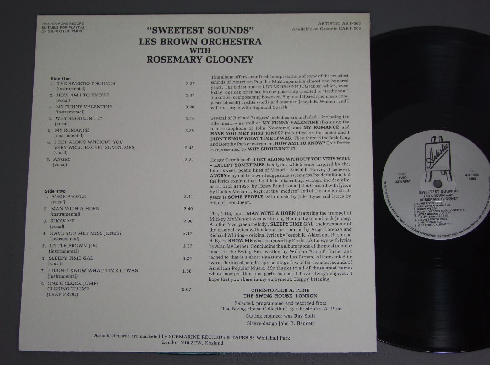 LES BROWN ORCHESTRA/WITH ROSEMARY CLOONEY ART003 製造国:英国盤 / Media:LP外観:EX-盤の状態:EX+ 価格(税込):¥209(売約済) 送料 7inch:定形外郵便 360円~LP:定形外郵便 660円~送料は、注文の最終画面で確認頂けます。 > > LES BROWN ORCHESTRA/WITH ROSEMARY CLOONEY 外観 (EX-)特記事項:底抜け有り。また、その部分に着色補修。表ジャケの右上角にヨレが少々有りますが、ジャケ表面は全体的にスレやスリキズ、よごれ等は薄い感じ。外観EX-の共通説明:ダメージ軽度~多少。 中古品としては普通の状態。シミ、ヨゴレ、スレなど軽く~多少。 盤の状態 (EX+)特記事項:極薄いスリキズ・スレ少し。一見してきれいな状態です。盤EX+の共通説明:盤面の極薄いスリキズ、スレ少し程度 音に出そうなものは無いように見える(極軽微なソフトティック音は除く)。 Tweet それぞれの画像をクリックすると、大きい写真が見られます こちらの商品もお勧めです 1,320円 SHARKEY AND HIS KINGS OF DIXIELAND / MIDNIGHT ON BOURBON STREET 550円 DOWN TOWN JAZZ BAND / DIXIELAND FESTIVAL 1,100円 RICHIE COLE / ALIVE AT THE VILLAGE VANGUARD 990円 CLANCY HAYES / SWINGIN` MINSTREL AUTOGRAPHED ( RALPH SUTTON )SWINGIN` MINSTREL (RALPH SUTTON サイン付) 1,100円 RAINIER JAZZ BAND / CAKEWALK INTO TOWN 770円 DOC EVANS / DIXIELAND CONCERT PLAYED AT THE WALKER ART CENTER 1,100円 FREEMAN-WETTLING etc / COMMODORE STYLE 1938 & 44 1,320円 RALPH SUTTON / BIX BEIDERBECKE SUITE AUTOGRAPHEDBIX BEIDERBECKE SUITE サイン付