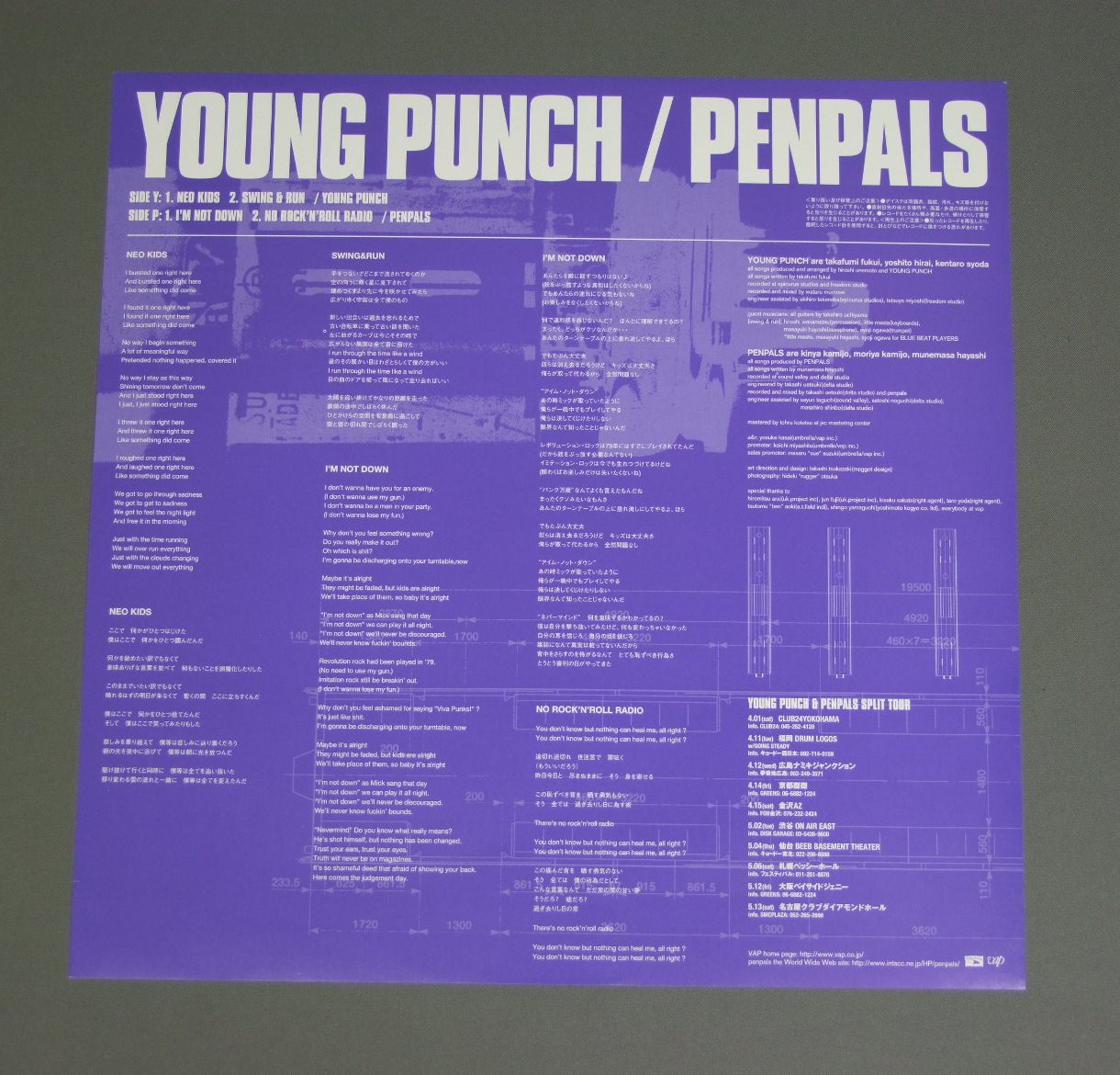 YOUNG PUNCH/PENPALS VPJC31004 製造国:日本盤 / Media:LP外観:EX+盤の状態:EX 価格(税込):¥524(売約済) 送料 7inch:定形外郵便 360円~LP:定形外郵便 660円~送料は、注文の最終画面で確認頂けます。 > > YOUNG PUNCH/PENPALS 外観 (EX+)特記事項:ジャケ表面は全体的にスレやスリキズ、よごれ等はあまり無い感じ。外観EX+の共通説明:中古としては美品、一見してきれいでダメージが軽微。シミ、ヨゴレ、スレ有っても僅か~少し。 盤の状態 (EX)特記事項:薄いスリキズ・スレ軽くある感じ。ほとんどが軽微なものの様子です。盤EXの共通説明:盤面のスリキズが薄いものが少し~軽度 音に出そうなものは無いように見える(軽微なソフトティック音は除く)。 Tweet それぞれの画像をクリックすると、大きい写真が見られます こちらの商品もお勧めです 1,320円 EASTERN ORBITイースタン・オービット / JOURNEY TO UTOPIAジャーニー・トゥ・ユートピア 1,320円 KERAケラ / RECORD PIC DISCピクチャー盤 1,320円 EARTH SHAKER / PASSION 770円 BOW WOWバウワウ / BOW WOWバウワウ 1,320円 BROWN SUGARブラウン・シュガー / SEXY BROWN SUGAR 770円 COOLSクールス / ROCK`N`ROLL ANGELSロックン・ロール・エンジェルス 660円 BOW WOW / WARNING FROM STARDUST 990円 COOLSクールス / COOLS ROCKABILLY CLUBクールス・ロカビリー・クラブ