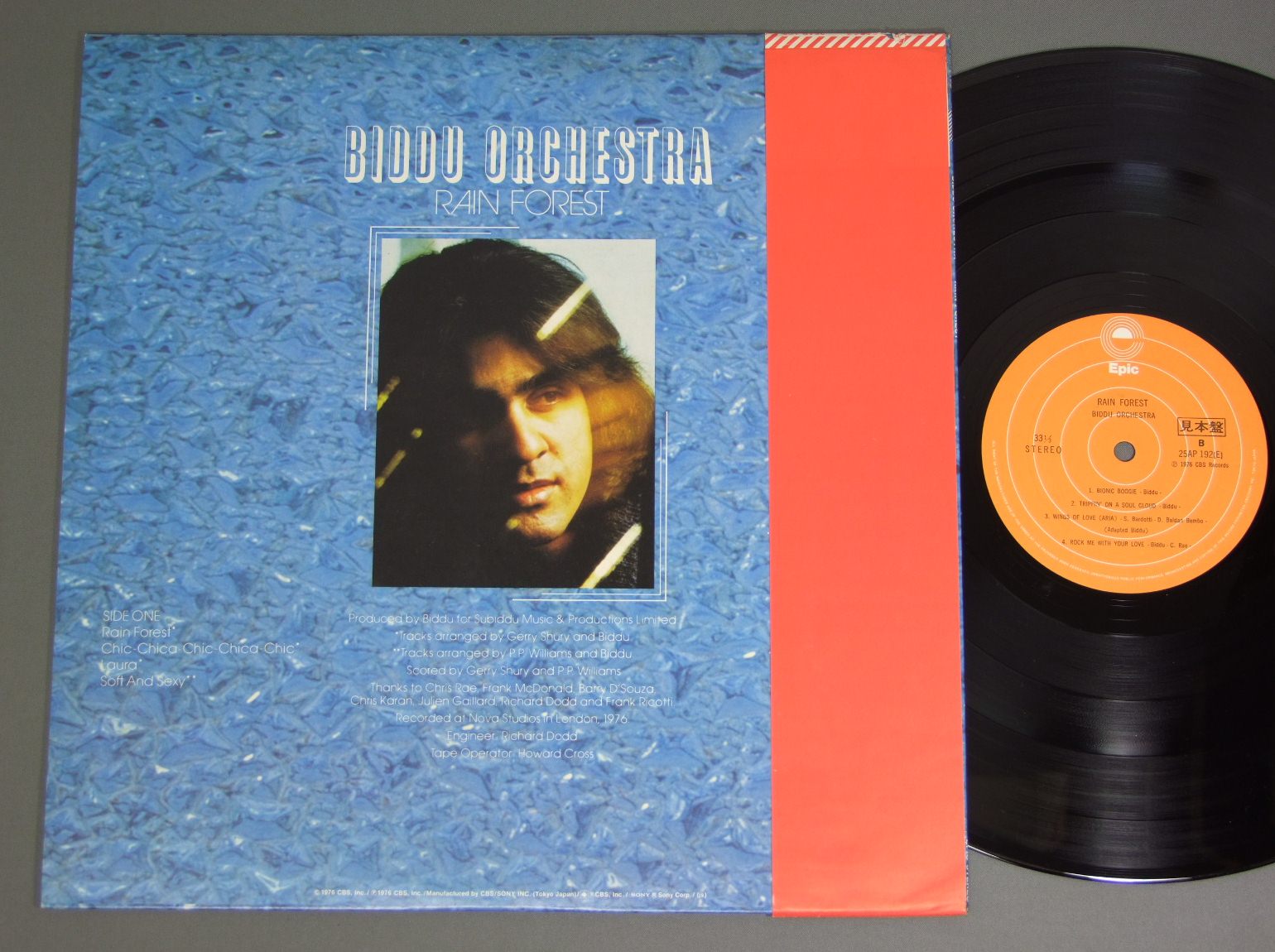 BIDDU ORCHESTRA/RAIN FORESTソウル・オーケストラの貴公子 25AP192 製造国:日本盤 / Media:LP外観:EX盤の状態:EX+帯:EX 価格(税込):¥440(売約済) 送料 7inch:定形外郵便 360円~LP:定形外郵便 660円~送料は、注文の最終画面で確認頂けます。 > > BIDDU ORCHESTRA/RAIN FOREST 外観 (EX)特記事項:ジャケ表面は全体的にスレやスリキズ、よごれ等は薄い感じ。外観EXの共通説明:ダメージが限定的。中古品としては保存状態がよい方。シミ、ヨゴレ、スレ 少し~軽度。 盤の状態 (EX+)特記事項:極薄いスリキズ・スレ少し。一見してきれいな状態です。盤EX+の共通説明:盤面の極薄いスリキズ、スレ少し程度 音に出そうなものは無いように見える(極軽微なソフトティック音は除く)。 帯の状態 (EX):上ヘリに短い切れ有りますが、全体的にヨレやよごれ等はあまりない感じ。 その他:見本盤 ※画像では確認できない、上下ヘリ、背表紙、取り出し口を中心に状態表記しております。画像で確認出来る表裏ジャケ、レーベルの状態表記は省いている場合がありますので、そちらの状態は画像でご確認をお願い致します。携帯の方は一度PC等で写真をご確認の上ご入札下さいますよう、お願い申し上げます。 Tweet それぞれの画像をクリックすると、大きい写真が見られます こちらの商品もお勧めです 880円 MASAMI NAKAGAWA中川昌三 / PRELUDE FOR AUTUMNプレリュード・フォー・オータム 880円 SADAO WATANABE渡辺貞夫 / MY DEAR LIFEマイ・ディア・ライフ 770円 MATT DENNIS & RED NORVOマット・デニス & レッド・ノーヴォ / SOME OF MY FAVORITESサム・オブ・マイ・フェイバリッツ 1,210円 DEREK SMITHディレク・スミス / NEW SOILニュー・ソワール 1,650円 TOM BROWNEトム・ブラウン / BROWNE SUGARブラウン・シュガー 660円 JACQUES LOUSSIERジャック・ルーシエ・トリオ / PLAY BACH VOL.4プレイ・バッハ 第4集 1,320円 SADAO WATANABE & CHARLIE MARIANO渡辺貞夫&チャーリー・マリアーノ / IBERIAN WALTZイベリアン・ワルツ 1,210円 EDDIE CONDON & OTHERSエディ・コンドン・アンド・アザーズ / CHICAGO&ALL THAT JAZZ!シカゴ・アンド・オール・ザット・ジャズ!