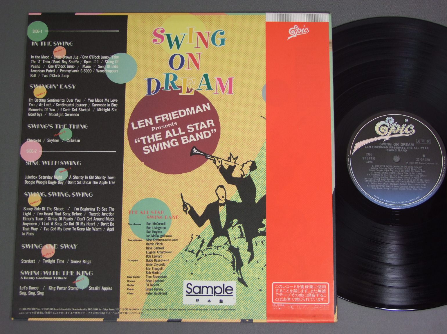 LEN FRIEDMAN AND THE ALL STAR SWING BAND/SWING ON DREAM 25 3P370 製造国:日本盤 / Media:LP外観:EX+盤の状態:EX+帯:EX 価格(税込):¥440(売約済) 送料 7inch:定形外郵便 360円~LP:定形外郵便 660円~送料は、注文の最終画面で確認頂けます。 レコード検索 > 全てのジャンル > LEN FRIEDMAN AND THE ALL STAR SWING BAND/SWING ON DREAM 外観 (EX+)特記事項:ジャケ表面は全体的にスレやスリキズ、よごれ等はあまり無い感じ。外観EX+の共通説明:中古としては美品、一見してきれいでダメージが軽微。シミ、ヨゴレ、スレ有っても僅か~少し。 盤の状態 (EX+)特記事項:極薄いスリキズ・スレ少し。一見してきれいな状態です。盤EX+の共通説明:盤面の極薄いスリキズ、スレ少し程度 音に出そうなものは無いように見える(極軽微なソフトティック音は除く)。 帯の状態 (EX):あまりヨレやよごれ等は無い感じ。 その他:見本盤 ※画像では確認できない、上下ヘリ、背表紙、取り出し口を中心に状態表記しております。画像で確認出来る表裏ジャケ、レーベルの状態表記は省いている場合がありますので、そちらの状態は画像でご確認をお願い致します。携帯の方は一度PC等で写真をご確認の上ご入札下さいますよう、お願い申し上げます。 Tweet それぞれの画像をクリックすると、大きい写真が見られます こちらの商品もお勧めです 1,320円 PAUL WINTER SEXTETポール・ウィンター・セクステット / JAZZ MEETS THE FOLK SONG 60s ISUUEフォーク・モダン・ジャズ ペラジャケ 1,210円 MODERN JAZZ QUARTET & SWINGLE SINGERSMJQとスィングル・シンガーズ / PLACE VENDOMEヴァンドーム 1,320円 TOSHIKO AKIYOSHI - LEW TABACKIN BIG BAND秋吉敏子=ルー・タバキン・ビッグ・バンド / INSIGHTSインサイツ 1,210円 ERIC DOLPHYエリック・ドルフィー / AT THE FIVE SPOTアット・ザ・5・スポットVOL2 1,210円 EARL HINESアール・ハインズ / SPONT ANEOUS EXPLORATIONSアール・ハインズ・ソロ・ピアノ 770円 SADAO WATANABE渡辺貞夫 / CALIFORNIA SHOWERカリフォルニア シャワー 1,320円 HAMPTON HAWESハンプトン・ホース / HAMPTON HAWES VOL1ザ・トリオ VOL1 1,210円 EUGEN CICEROオイゲン・キケロ・トリオ / ROKOKO-JAZZロココ・ジャズ
