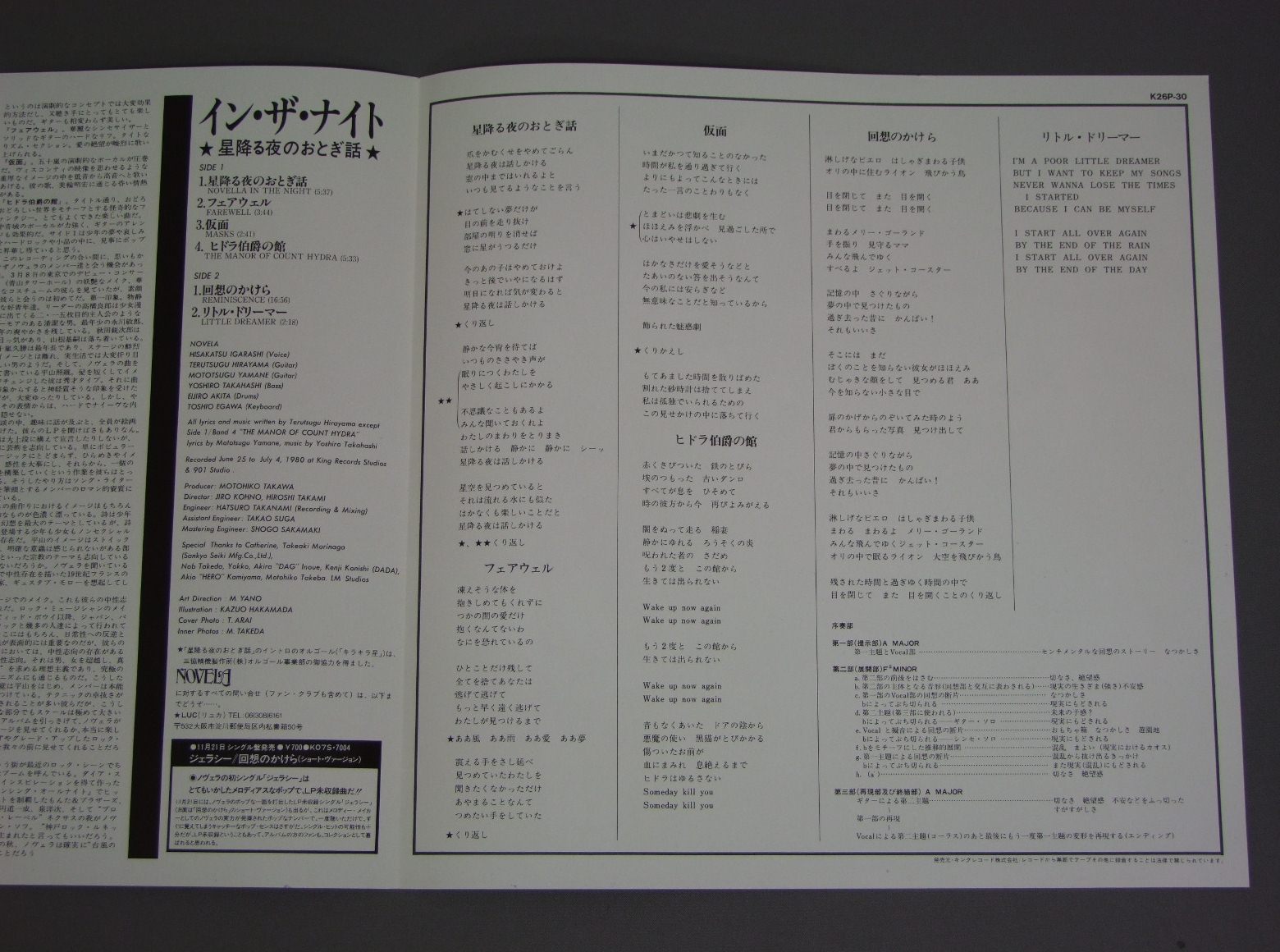NOVELA/IN THE NIGHT星降る夜のおとぎ話 K26P30 製造国:日本盤 / Media:LP外観:EX+盤の状態:EX+帯:EX+ 価格(税込):¥2,338(売約済) 送料 7inch:定形外郵便 360円~LP:定形外郵便 660円~送料は、注文の最終画面で確認頂けます。 > > NOVELA/IN THE NIGHT 外観 (EX+)特記事項:ジャケ表面は全体的にスレやスリキズ、よごれ等の少ないきれいな状態。外観EX+の共通説明:中古としては美品、一見してきれいでダメージが軽微。シミ、ヨゴレ、スレ有っても僅か~少し。 盤の状態 (EX+)特記事項:極薄いスリキズ・スレ少し。一見してきれいな状態です。盤EX+の共通説明:盤面の極薄いスリキズ、スレ少し程度 音に出そうなものは無いように見える(極軽微なソフトティック音は除く)。 帯の状態 (EX+):あまりヨレやよごれ等は無い感じ。 Tweet それぞれの画像をクリックすると、大きい写真が見られます こちらの商品もお勧めです 1,320円 EASTERN ORBITイースタン・オービット / JOURNEY TO UTOPIAジャーニー・トゥ・ユートピア 1,320円 KERAケラ / RECORD PIC DISCピクチャー盤 1,980円 MODSモッズ / BLUE -MIDNIGHT HIGHWAY-夜のハイウェイ 770円 CAROLキャロル / CAROL FIRSTキャロル・ファースト 990円 COOLSクールス / COOLS ROCKABILLY CLUBクールス・ロカビリー・クラブ 990円 44 MAGUNAM44 マグナム / DANGER MONEY 1,320円 BROWN SUGARブラウン・シュガー / SEXY BROWN SUGAR 1,320円 GERARDジェラルド / GERARDジェラルド