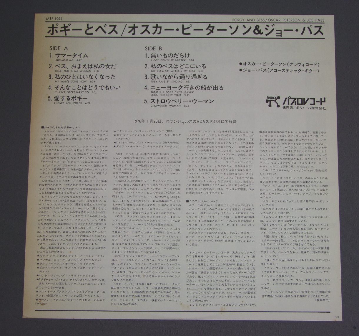 OSCAR PETERSON AND JOE PASS/PORGY AND BESS MTF11053 製造国:日本盤 / Media:LP外観:EX-盤の状態:EX+ 価格(税込):¥1,100(売約済) 送料 7inch:定形外郵便 360円~LP:定形外郵便 660円~送料は、注文の最終画面で確認頂けます。 > > OSCAR PETERSON AND JOE PASS/PORGY AND BESS 外観 (EX-)特記事項:背スレ多いです。角スレも多少有り。ジャケ表面は全体的にスレやスリキズ、よごれ等は少ない感じ。解説カードに日焼け有り。外観EX-の共通説明:ダメージ軽度~多少。 中古品としては普通の状態。シミ、ヨゴレ、スレなど軽く~多少。 盤の状態 (EX+)特記事項:極薄いスリキズ・スレ少し。一見してきれいな状態です。盤EX+の共通説明:盤面の極薄いスリキズ、スレ少し程度 音に出そうなものは無いように見える(極軽微なソフトティック音は除く)。 Tweet それぞれの画像をクリックすると、大きい写真が見られます こちらの商品もお勧めです 880円 V-DISC ALL-STAR JAM SESSIONSVディスク・オールスター・ジャムセッション / V-DISC ALL-STAR JAM SESSIONSVディスク・オールスター・ジャムセッション VOL.5 880円 JOE SULLIVAN-JESS STACY-WILLIE THE LION SMITH etcジョー・ブシュキン-ジェス・スティシー-ウィリーザ・ライオンスミス 他 / CHAIRMEN OF THE BOARD VOL2ピアノ・ジャズの競演 第2集 1,320円 BUD POWELLバド・パウエル / BUD POWELL TRIOバド・パウエル トリオ 660円 EDDIE HEYWOOD / TOUCH OF EDDIE HEYWOOD 880円 HARRIS SIMON GROUPハリス・サイモン・グループ / NEW YORK CONNECTIONニューヨーク・コネクション 1,210円 ERIC DOLPHYエリック・ドルフィー / LAST DATEラスト・レコーディング 1,650円 NORIO MAEDA前田憲男 / SOUND IN VICTRONSOUND IN VICTRON 1,320円 JACKIE McLEAN QUINTETジャッキー・マクリーン・クインテット / JACKIE McLEAN QUINTETJACIE McLEAN QUINTET