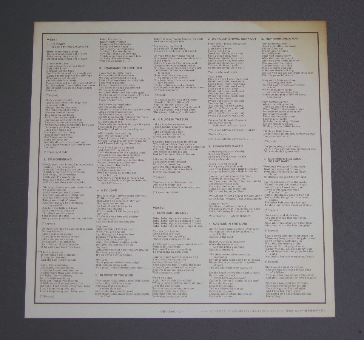 STEVIE WONDER/GREATEST HITS VIP7516 製造国:日本盤 / Media:LP外観:VG+盤の状態:EX+帯:EX- 価格(税込):¥524(売約済) 送料 7inch:定形外郵便 360円~LP:定形外郵便 660円~送料は、注文の最終画面で確認頂けます。 > > STEVIE WONDER/GREATEST HITS 外観 (VG+)特記事項:裏ジャケ側にシミ多いです。ジャケ表面は全体的にスレやスリキズ等は少ない感じ。外観VG+の共通説明:ダメージやや有り。シミ、ヨゴレ、スレなど多少~やや多め。 盤の状態 (EX+)特記事項:極薄いスリキズ・スレ少し。一見してきれいな状態です。盤EX+の共通説明:盤面の極薄いスリキズ、スレ少し程度 音に出そうなものは無いように見える(極軽微なソフトティック音は除く)。 帯の状態 (EX-):ヨレは少ない感じですが、裏側にシミ多いです。表側背側に日焼け退色。 Tweet それぞれの画像をクリックすると、大きい写真が見られます こちらの商品もお勧めです 1,320円 STAX - VOLT LABL SOUL / LIVE IN PARISソウル・エクスプロージョン ライヴ・イン・パリ 770円 DIANA ROSSダイアナ・ロス / ROSSロス 440円 PEABO BRYSONピーボ・ブライソン / STRAIGHT FROM THE HEARTストレイト・フロム・ザ・ハート 1,210円 TEMPTATIONSテンプテーションズ / TOUCH MEタッチ・ミー 1,210円 TEMPTATIONSテンプテーションズ / TO BE CONTINUEDトゥ・ビー・コンティニュード 1,320円 RAY CHARLESレイ・チャールズ / BEST OF RAY CHARLESレイ・チャールズのすべて 1,320円 CAROL DOUGLASキャロル・ダグラス / CAROL DOUGLAS ALBUM恋の診断書-恋のハリケーン 1,210円 FOUR TOPSフォー・トップス / MAGICマジック