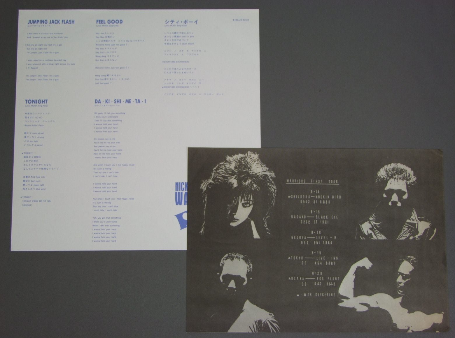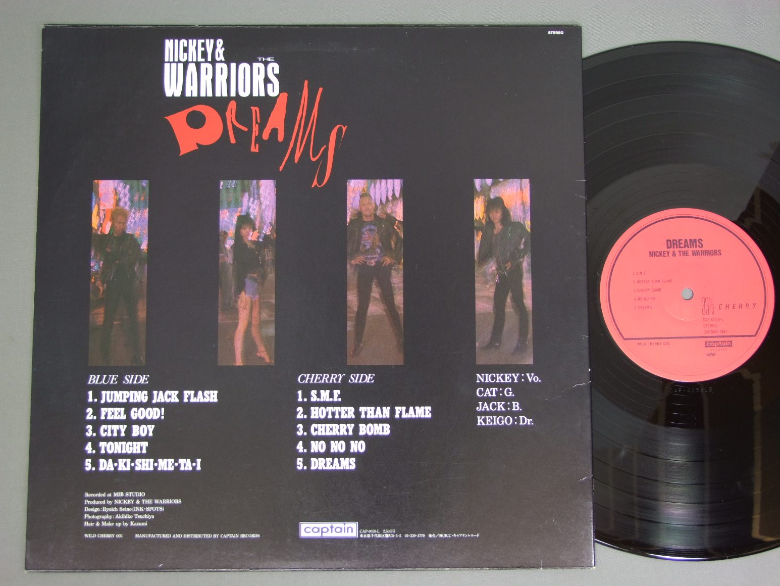 NICKEY AND THE WARRIORS/DREAMS CAP0058L 製造国:日本盤 / Media:LP外観:EX盤の状態:EX+ 価格(税込):¥1,650(売約済) 送料 7inch:定形外郵便 360円~LP:定形外郵便 660円~送料は、注文の最終画面で確認頂けます。 > > NICKEY AND THE WARRIORS/DREAMS 外観 (EX)特記事項:角スレ少し。背や上ヘリでスレが少々。ジャケ表面は全体的にスレやスリキズ、よごれ等は薄い感じ。外観EXの共通説明:ダメージが限定的。中古品としては保存状態がよい方。シミ、ヨゴレ、スレ 少し~軽度。 盤の状態 (EX+)特記事項:極薄いスリキズ・スレ少し。一見してきれいな状態です。盤EX+の共通説明:盤面の極薄いスリキズ、スレ少し程度 音に出そうなものは無いように見える(極軽微なソフトティック音は除く)。 Tweet それぞれの画像をクリックすると、大きい写真が見られます こちらの商品もお勧めです 1,320円 EARTH SHAKER / MIDNIGHT FLIGHT 1,210円 BOW WOWバウワウ / CHARGEチャージ 1,980円 MODSモッズ / CORNER 1,650円 MISAKO HONJOH本城未沙子 / DREAMERドリーマー 1,650円 KILLER MAYキラー・メイ / BYE BYE HIGH SCHOOLバイバイ・ハイスクール 770円 COOLSクールス / ROCK`N`ROLL ANGELSロックン・ロール・エンジェルス 1,320円 BROWN SUGARブラウン・シュガー / SEXY BROWN SUGAR 1,210円 LOUDNESSラウドネス / RISKY WOMANリスキー・ウーマン