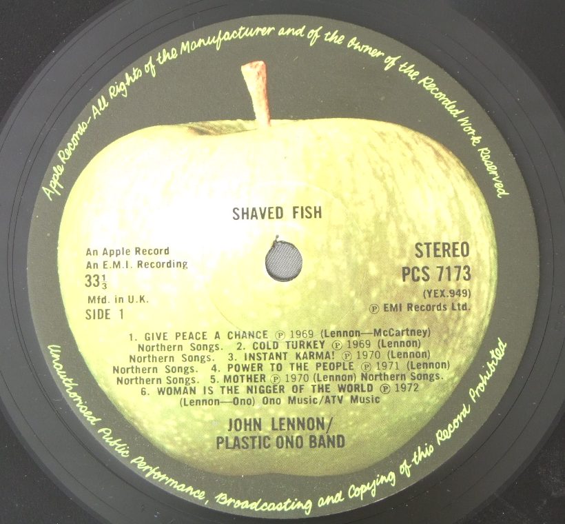 JOHN LENNON/SHAVED FISH PCS7173 製造国:英国盤 / Media:LPMatrix: -1U / 4 / PR | -1U / 2 / RG外観:EX+盤の状態:EX 価格(税込):¥6,050(売約済) 送料 7inch:定形外郵便 360円~LP:定形外郵便 660円~送料は、注文の最終画面で確認頂けます。 レコード検索 > CLASSIC CHAMBER > JOHN LENNON/SHAVED FISH 外観 (EX+)特記事項:全体的にコーティングのヨレシワもあまり無く、スレやスリキズのとても少ないきれいな状態。角張った感じが残っています。レコード取り出し口下縁で僅かにヨレ。インナーもヨレやごれのあまり無い状態。美品です。外観EX+の共通説明:中古としては美品、一見してきれいでダメージが軽微。シミ、ヨゴレ、スレ有っても僅か~少し。 盤の状態 (EX)特記事項:薄いスリキズ・うっすらの表面スレ軽くある感じ。音に出そうなものもなく一見してきれいな状態です。曲間など、静かなところを中心に聴いて見ましたが、チリノイズ少ないきれいな再生具合でした。盤EXの共通説明:盤面のスリキズが薄いものが少し~軽度 音に出そうなものは無いように見える(軽微なソフトティック音は除く)。 Tweet それぞれの画像をクリックすると、大きい写真が見られます こちらの商品もお勧めです 5,500円 GEORGE HARRISON / LIVING IN THE MATERIAL WORLD 4,950円 JOHN & YOKO - PLASTIC ONO BANDF / SOME TIME IN NEW YORK CITY 5,500円 JOHN LENNON / SHAVED FISH 5,500円 GEORGE HARRISON / THIRTY THREE & 1/3 5,500円 BEATLES / AT THE HOLLYWOOD BOWL
