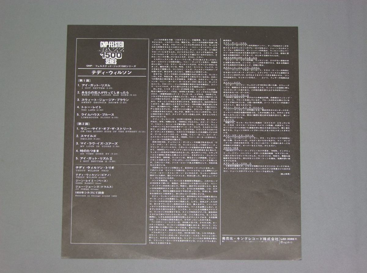 TEDDY WILSON/SAME TITLE LAX3086 製造国:日本盤 / Media:LP外観:EX盤の状態:EX+ 価格(税込):¥943(売約済) 送料 7inch:定形外郵便 360円~LP:定形外郵便 660円~送料は、注文の最終画面で確認頂けます。 > > TEDDY WILSON/SAME TITLE 外観 (EX)特記事項:ジャケ表面は全体的にスレやスリキズ、よごれ等は薄い感じ。外観EXの共通説明:ダメージが限定的。中古品としては保存状態がよい方。シミ、ヨゴレ、スレ 少し~軽度。 盤の状態 (EX+)特記事項:薄いスリキズ・スレ少し。一見してきれいな状態です。盤EX+の共通説明:盤面の極薄いスリキズ、スレ少し程度 音に出そうなものは無いように見える(極軽微なソフトティック音は除く)。 その他: ※画像では確認できない、上下ヘリ、背表紙、取り出し口を中心に状態表記しております。画像で確認出来る表裏ジャケ、レーベルの状態表記は省いている場合がありますので、そちらの状態は画像でご確認をお願い致します。携帯の方は一度PC等で写真をご確認の上ご入札下さいますよう、お願い申し上げます。 Tweet それぞれの画像をクリックすると、大きい写真が見られます こちらの商品もお勧めです 1,650円 MODERN JAZZ QUARTETモダン・ジャズ・カルテット / CONCORDEコンコルド・デラックス 1,320円 GERY PEACOCKゲーリー・ピーコック / TALES OF ANOTHERTALES OF ANOTHER 770円 KAI WINDING & J.J.JOHNSONケイ・ウィンディング5重奏団 + J.J.ジョンソン / AFTERNOON AT BIRDLANDバードランドのJ & K 1,210円 EUGEN CICEROオイゲン・キケロ・トリオ / ROKOKO-JAZZロココ・ジャズ 770円 TEDDY WILSONテディ・ウィルソン / THE TEDDY WILLSON 1,650円 KEITH JARRETTキース・ジャレット / DEATH AND THE FLOWER生と死の幻想 770円 BUDDY RICHバディ・リッチ / DIFFERENT DRUMMERディファレント・ドラマー 1,210円 OUT OF THE BLUEアウト・オブ・ザ・ブルー / OUT OF THE BLUEアウト・オブ・ザ・ブルー