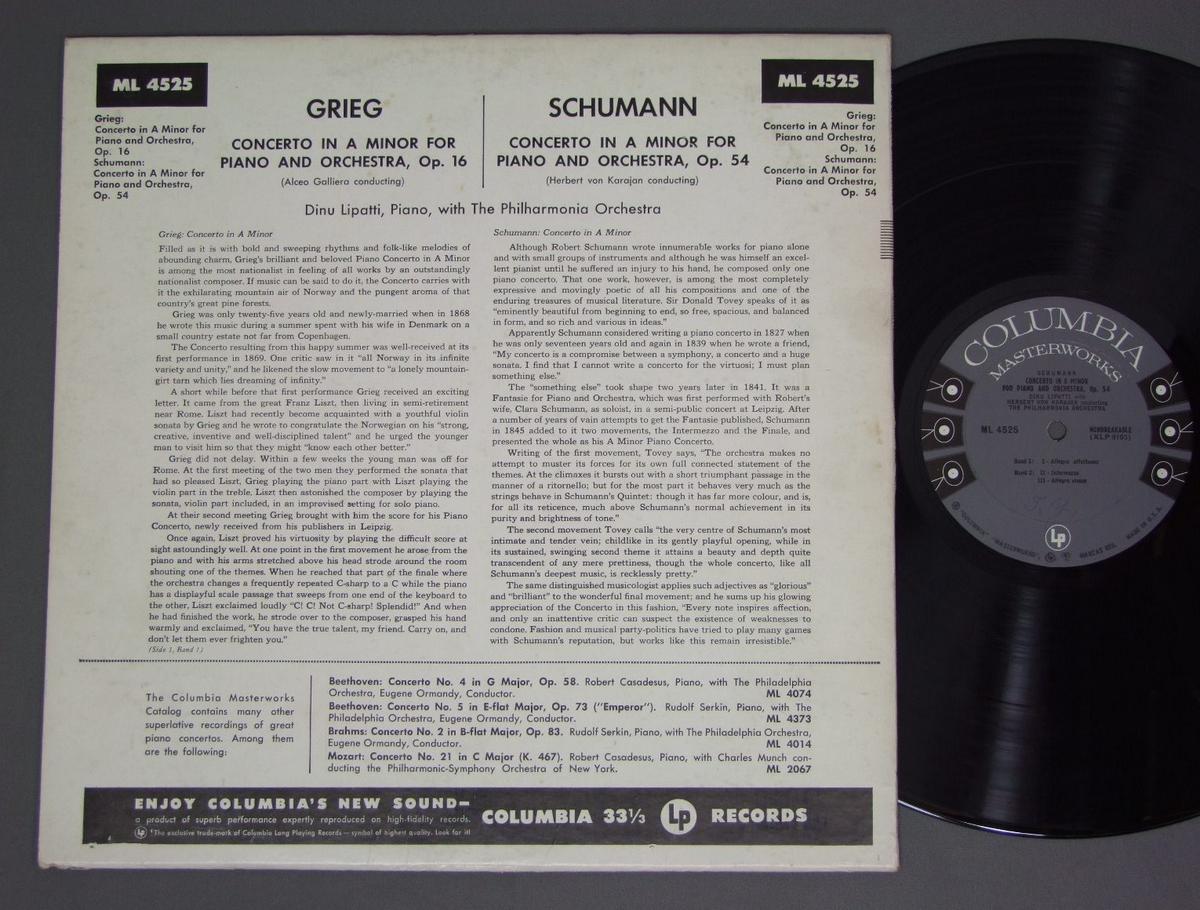 LIPATTI/SCHUMANN GREIEG PIANO con. ML4525 製造国:米国盤 / Media:LP外観:EX盤の状態:EX+ 価格(税込):¥1,047(売約済) 送料 7inch:定形外郵便 360円~LP:定形外郵便 660円~送料は、注文の最終画面で確認頂けます。 > > LIPATTI/SCHUMANN GREIEG PIANO con. 外観 (EX)特記事項:レコード取り出し口下角で割れ。底スレ多少有り。ジャケ表面は全体的にスレやスリキズ、よごれ等は薄い感じ。外観EXの共通説明:ダメージが限定的。中古品としては保存状態がよい方。シミ、ヨゴレ、スレ 少し~軽度。 盤の状態 (EX+)特記事項:薄いスリキズ・スレ少し。一見してきれいな状態です。音にでそうなものはほぼ無く、有ってもソフトティック少し程度でしょう。盤EX+の共通説明:盤面の極薄いスリキズ、スレ少し程度 音に出そうなものは無いように見える(極軽微なソフトティック音は除く)。 その他:レーベルに書込み。 Tweet それぞれの画像をクリックすると、大きい写真が見られます こちらの商品もお勧めです 990円 SIR THOMAS BEECHAM / EVERYMAN OPERA SERIES-THE SERAGLIO 1,980円 GIBSON / ELGAR-THE DREAM OF GERONTIUS OPUS38 1,980円 KONDRASHIN / HINDEMITH-CELLO & CLARINET CONCERTI 990円 ORMANDY - PHILADELPHIA ORCH. / TCHAIKOVSKY - SYM. NO6 990円 HASKIL / W A MOZART KLAVIERKONZERTE 990円 ANDRE KOSTELANETZ / COPLAND-LINCOLN PORTRAIT etc 990円 SUZANNE DANCO-ANSERMET / FALLA-THE THREE CORNERED HAT 1,320円 KRIPS / SCHUMANN-SYM.S NO 1 & 4