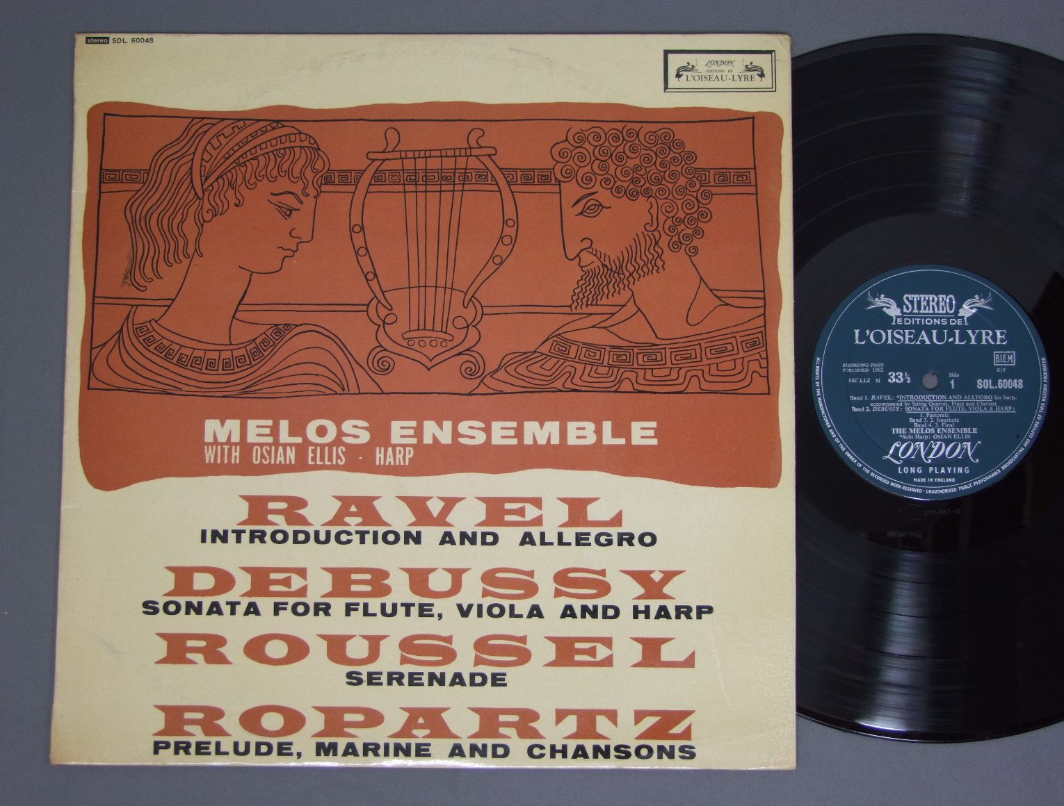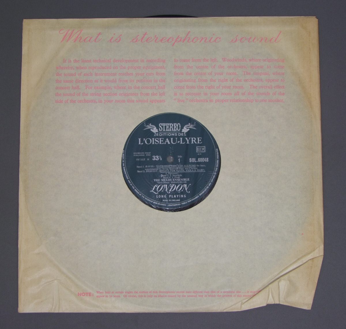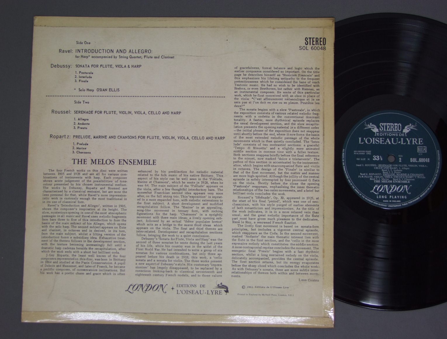 MELOS ENSEMBLE/RAVEL DEBUSSY SOL60048 製造国:英国盤 / Media:LP外観:EX-盤の状態:EX 価格(税込):¥1,885(売約済) 送料 7inch:定形外郵便 360円~LP:定形外郵便 660円~送料は、注文の最終画面で確認頂けます。 > > MELOS ENSEMBLE/RAVEL DEBUSSY 外観 (EX-)特記事項:背や上下ヘリに日焼け有り。表ジャケは厚手のコーティング仕様。コーティングのシワやスレ、スリキズは少ない感じですが、やや日焼け感あり。裏ジャケはスレよごれ多少有り。外観EX-の共通説明:ダメージ軽度~多少。 中古品としては普通の状態。シミ、ヨゴレ、スレなど軽く~多少。 盤の状態 (EX)特記事項:薄いスリキズ・スレ軽くある感じ。プチ出そうな所は少しだけで、ほとんどが軽微なものの様子です。盤EXの共通説明:盤面のスリキズが薄いものが少し~軽度 音に出そうなものは無いように見える(軽微なソフトティック音は除く)。 その他:レーベルに書込み。※画像では確認できない、上下ヘリ、背表紙、取り出し口を中心に状態表記しております。画像で確認出来る表裏ジャケ、レーベルの状態表記は省いている場合がありますので、そちらの状態は画像でご確認をお願い致します。携帯の方は一度PC等で写真をご確認の上ご入札下さいますよう、お願い申し上げます。 Tweet それぞれの画像をクリックすると、大きい写真が見られます こちらの商品もお勧めです 1,320円 JORGE BOLET / REGER - VARIATION AND FUGUE ON A THEMA BY TELEMANN 1,320円 WOOLF-BEDFORD / STRAVINSKY/PROKOFIEV 1,320円 COMPOSER / SIR FREDERIC COWEN 1,430円 WILLI BOSKOVSKY / VIENNA CARNIVAL 990円 EUGENE MRAVINSKY-ALEXANDER GAUK / SYM.S-PROKOFIEV-NO6 2,420円 RICHARD KRAUS etc / RICHARD WAGNER-100 JAHRE BAYREUTH 1,650円 KARAJAN / LEHAR-THE MERRY WINDOW 1,210円 PRIMROSE - BEECHAM - ROYAL PHIL. / BERLIOZ - HAROLD IN ITALY