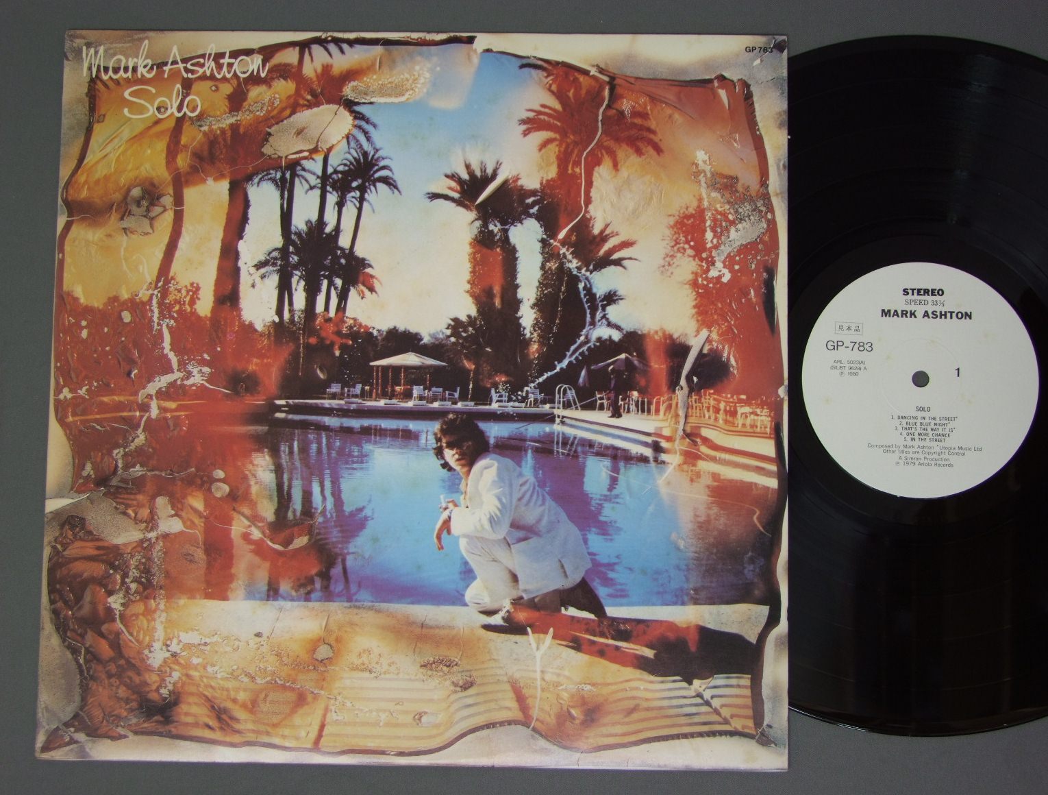MARK ASHTON/SOLO GP783 製造国:日本盤 / Media:LP外観:EX-盤の状態:EX 価格(税込):¥330(売約済) 送料 7inch:定形外郵便 360円~LP:定形外郵便 660円~送料は、注文の最終画面で確認頂けます。 > > MARK ASHTON/SOLO 外観 (EX-)特記事項:ジャケ表面は全体的にスレやスリキズは薄い感じ。薄いシミ軽やや有り。外観EX-の共通説明:ダメージ軽度~多少。 中古品としては普通の状態。シミ、ヨゴレ、スレなど軽く~多少。 盤の状態 (EX)特記事項:薄いスリキズ・スレ軽くある感じ。ほとんどが軽微なものの様子で、なかなかきれいな印象です。盤EXの共通説明:盤面のスリキズが薄いものが少し~軽度 音に出そうなものは無いように見える(軽微なソフトティック音は除く)。 その他:白見本盤 Tweet それぞれの画像をクリックすると、大きい写真が見られます こちらの商品もお勧めです 1,210円 ENGELBERT HUMPERDINCKエンゲルベルト・フンパーディンク / MY LOVEマイ・ラヴ 770円 GARY WRIGHTゲイリー・ライト / TOUCH AND GONEタッチ・アンド・ゴーン 1,320円 DICK ST.NIKULAUSディック・セント・ニクラウス / MAGICマジック 770円 JOSE FELICIANOホセ・フェリシアーノ / FIREWORKSファイアーワークス 770円 DAN FOGELBERGダン・フォーゲルバーグ / PHOENIXフェニックス 770円 NEIL DIAMONDニール・ダイアモンド / I`M GLAD YOU`RE HERE WITH ME TONIGHT愛のぬくもり 770円 JOHNNY CASHジョニー・キャシュ / JOHNNY CASH`S GREATEST HITSジョニー・キャシュ・グレーテスト・ヒット 990円 SHAUN CASSIDYショーン・キャシディ / ROOM SERVICEルーム・サーヴィス