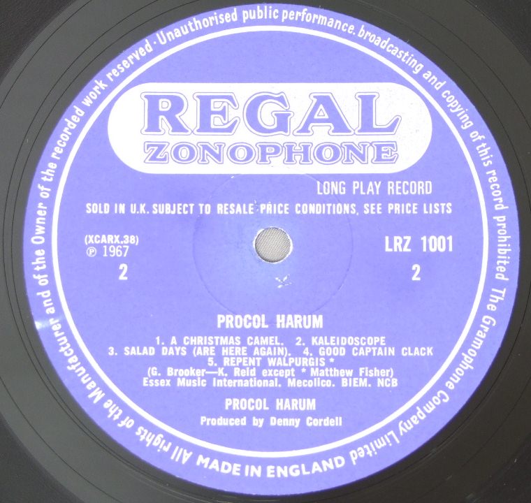 PROCOL HARUM/1st ALBUM LRZ1001 製造国:英国盤 / Media:LPMatrix: -2 | -2外観:EX盤の状態:EX+ 価格(税込):¥27,500(売約済) 送料 7inch:定形外郵便 360円~LP:定形外郵便 660円~送料は、注文の最終画面で確認頂けます。 レコード検索 > CLASSIC CHAMBER > PROCOL HARUM/1st ALBUM 外観 (EX)特記事項:背中央にコーティングシワによるスレが少し。レコード取り出し口下角にスレ大です。表ジャケは背付近に濃い目のコーティングシワがありますが、全体的にはコーティングシワは少ない感じ。スレやスリキズも薄いものが中心。背やレコード取り出し口付近で少し日焼け感軽有る感じ。裏ジャケもスレやよごれ等は薄い感じです。外観EXの共通説明:ダメージが限定的。中古品としては保存状態がよい方。シミ、ヨゴレ、スレ 少し~軽度。 盤の状態 (EX+)特記事項:A面にうっすらの長めのスレキズと、B3に極小プレスミスがあるぐらい。盤も黒さがしっかり残っていて一見してきれいな状態です。曲間等、静かな所を中心に聴いてみましたが、チリノイズ少ない綺麗な再生具合でした。盤EX+の共通説明:盤面の極薄いスリキズ、スレ少し程度 音に出そうなものは無いように見える(極軽微なソフトティック音は除く)。 Tweet それぞれの画像をクリックすると、大きい写真が見られます こちらの商品もお勧めです 5,500円 KEVIN COYNE / MATCHING HEAD AND FEET 6,050円 TRAFFIC / WHEN THE EAGLE FLIES 4,950円 EMERSON LAKE AND PALMER / PICTURES AT AN EXHIBITION 7,700円 BONZO DOG BAND / GORILLA / MONO 3,850円 WEST BRUCE AND LAING / WHY DONTCHA 7,150円 CHICKEN SHACK / UNLUCKY BOY FEATURING STAN WEBB 7,700円 STEAMHAMMER / 1st ALBUMREFLECTION盤 5,500円 NICE / AUTUMN `67 - SPRING `68