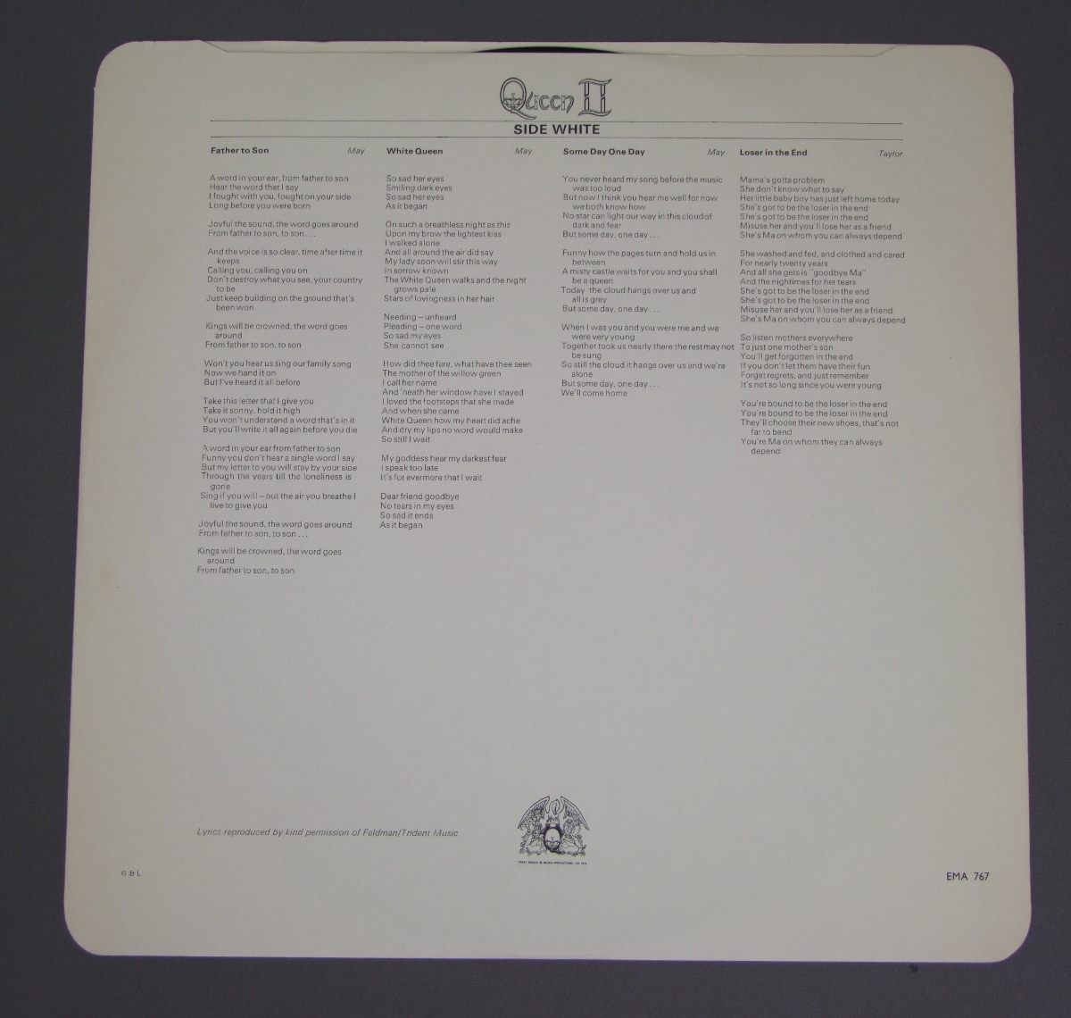 QUEEN/II EMA767 製造国:英国盤 / Media:LPMatrix: 8 | 4U外観:EX盤の状態:EX 価格(税込):¥2,619(売約済) 送料 7inch:定形外郵便 360円~LP:定形外郵便 660円~送料は、注文の最終画面で確認頂けます。 > > QUEEN/II 外観 (EX)特記事項:見開きも含めて厚手のコーティング仕様。全体的にコーティングのヨレシワは少ないです。黒が基調のジャケですので多少スレや細かいスリキズは見えますが、全体的には薄い感じのものが中心。オリジナルインナーはしっかりした感じで抜けは無いです。外観EXの共通説明:ダメージが限定的。中古品としては保存状態がよい方。シミ、ヨゴレ、スレ 少し~軽度。 盤の状態 (EX)特記事項:薄いスリキズ・スレ少しある程度。音に出そうなものもなく一見してきれいな状態です。曲間など、静かなところを中心に聴いて見ましたが、チリノイズ少ないきれいな再生具合でした。盤EXの共通説明:盤面のスリキズが薄いものが少し~軽度 音に出そうなものは無いように見える(軽微なソフトティック音は除く)。 その他:オリジナル・レーベルですが、少し後のプレスと思います。 Tweet それぞれの画像をクリックすると、大きい写真が見られます こちらの商品もお勧めです