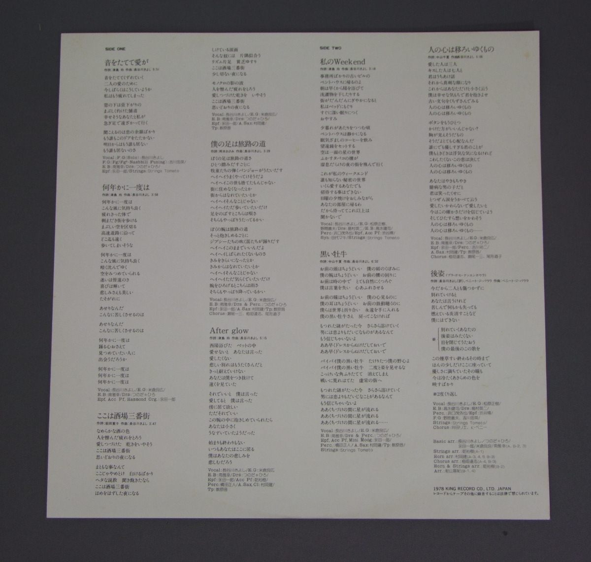 KIYOSHI HASEGAWA長谷川きよし/ANOTHER DOOR SKS1020 製造国:日本盤 / Media:LP外観:EX-盤の状態:EX帯:EX 価格(税込):¥734(売約済) 送料 7inch:定形外郵便 360円~LP:定形外郵便 660円~送料は、注文の最終画面で確認頂けます。 > > KIYOSHI HASEGAWA/ANOTHER DOOR 外観 (EX-)特記事項:角スレや上ヘリでスレが少し。レコード取り出し口下角にヨレ少々。裏ジャケにスリキズ多少有り。スレやよごれ等は薄い感じ。外観EX-の共通説明:ダメージ軽度~多少。 中古品としては普通の状態。シミ、ヨゴレ、スレなど軽く~多少。 盤の状態 (EX)特記事項:薄いスリキズ・スレ少しある程度。音に出そうなものもなく一見してきれいな状態です。盤EXの共通説明:盤面のスリキズが薄いものが少し~軽度 音に出そうなものは無いように見える(軽微なソフトティック音は除く)。 帯の状態 (EX):ヨレは軽い感じ。裏側に薄いよごれ多少有り。 その他:※画像では確認できない、上下ヘリ、背表紙、取り出し口を中心に状態表記しております。画像で確認出来る表裏ジャケ、レーベルの状態表記は省いている場合がありますので、そちらの状態は画像でご確認をお願い致します。携帯の方は一度PC等で写真をご確認の上ご入札下さいますよう、お願い申し上げます。 Tweet それぞれの画像をクリックすると、大きい写真が見られます こちらの商品もお勧めです 990円 TAKASHI NISHIOKA西岡たかし / SOUPスープ 1,210円 SUMIKO YAMAGATAやまがたすみこ / SUMIKO LIVE 2,200円 TAKUROU YOSHIDA吉田拓郎 / ON STAGEオン・ステージ 770円 TAKURO YOSHIDAよしだたくろう / ON STAGEオン・ザ・ステージ ともだち 1,650円 ITSUTSUNO AKAI FUSEN五つの赤い風船 / FOLK ALBUM NO1フォーク・アルバム第1集 1,320円 KIYOSHI HASEGAWA長谷川きよし / TOUMEINA HITOTOKIWO透明なひとときを 1,320円 HAKO YAMAZAKI山崎ハコ / AI IRO NO UTA藍色の詩 1,320円 SHIGERU IZUMIYA泉谷しげる / HIKARI TO KAGE光と影-泉谷しげる VOL4