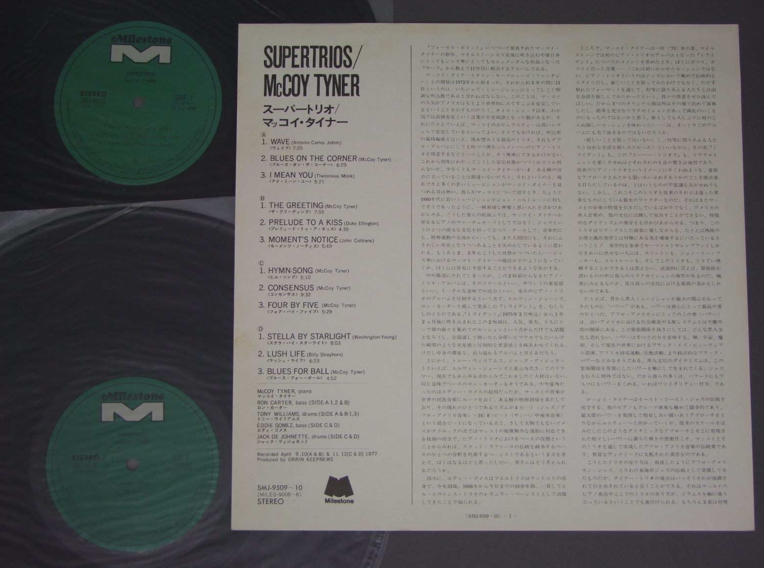 McCOY TYNER/SUPERTRIOS SMJ9509/10 製造国:日本盤 / Media:LP外観:VG+盤の状態:EX帯:VG 価格(税込):¥440(売約済) 送料 7inch:定形外郵便 360円~LP:定形外郵便 660円~送料は、注文の最終画面で確認頂けます。 > > McCOY TYNER/SUPERTRIOS 外観 (VG+)特記事項:背にスレやよごれ。裏ジャケ側底スレ大。ジャケ表面はスレやスリキズ等は薄い感じですが、裏ジャケにスレよごれや薄いシミやや有り。表ジャケはシミは少ない感じ。見開きにシミ多いです。外観VG+の共通説明:ダメージやや有り。シミ、ヨゴレ、スレなど多少~やや多め。 盤の状態 (EX)特記事項:薄いスリキズ・スレ軽くある感じ。ほとんどが軽微なものの様子です。盤EXの共通説明:盤面のスリキズが薄いものが少し~軽度 音に出そうなものは無いように見える(軽微なソフトティック音は除く)。 帯の状態 (VG):上ヘリで切れ。そこを起点にヨレ。表側は中央に切れ有り。 その他:2枚組 Tweet それぞれの画像をクリックすると、大きい写真が見られます こちらの商品もお勧めです 770円 MODERN JAZZ QUARTETMJQ / LAST CONCERTラスト・コンサート 1,210円 CLARKE BOLAND BIG BAND / SAME TITEL 880円 EUGENE CICEROオイゲン・キケロ / 3 GREAT ARTISTSスリー・グレイト・アーティスト 1,320円 TOSHIKO AKIYOSHI - LEW TABACKIN BIG BAND秋吉敏子=ルー・タバキン・ビッグ・バンド / INSIGHTSインサイツ 1,320円 CHARLIE MINGUSチャーリー・ミンガス / PITHECANTHROPUS ERECTUS直立猿人 1,210円 BUCK CLAYTON SEPTETバック・クレイトン / BUCKIN` THE BLUESバッキン・ザ・ブルース 1,320円 JAMES LAST BANDジェームス・ラスト・バンド / SEDUCTIONセダクション 1,210円 WYNTON KELLYウイントン・ケリー / KELLY BLUEケリー・ブルー