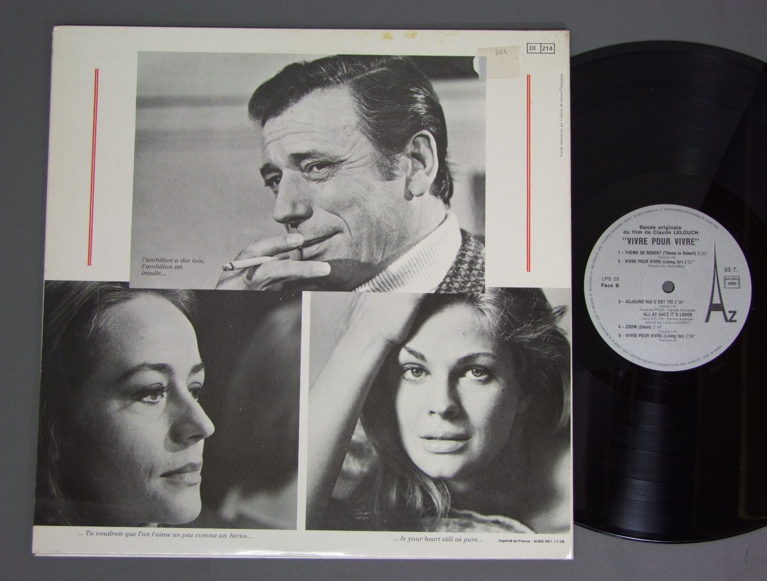 CLAUDE LELOUCH AND FRANCIS LAIクロード・ルルーシュ&フランシス・レイ/VIVRE POUR VIVREパリのめぐり逢い LPS20 製造国:仏盤 / Media:LP外観:EX盤の状態:EX+ 価格(税込):¥5,500(売約済) 送料 7inch:定形外郵便 360円~LP:定形外郵便 660円~送料は、注文の最終画面で確認頂けます。 レコード検索 > 全てのジャンル > CLAUDE LELOUCH AND FRANCIS LAI/VIVRE POUR VIVRE 外観 (EX)特記事項:上ヘリにシミやよごれ。裏ジャケや見開きの上の方にシミが少しありますが、ジャケ表面はスレやスリキズ、よごれ等は少ない感じ。外観EXの共通説明:ダメージが限定的。中古品としては保存状態がよい方。シミ、ヨゴレ、スレ 少し~軽度。 盤の状態 (EX+)特記事項:薄いスリキズ・スレ少し。一見してきれいな状態です。盤EX+の共通説明:盤面の極薄いスリキズ、スレ少し程度 音に出そうなものは無いように見える(極軽微なソフトティック音は除く)。 その他:貴重なオリジナル盤として仕入れましたが、確実な情報を持っていないので、60年の仏盤に詳しい方の購入をお願い出来ればと存じます。 Tweet それぞれの画像をクリックすると、大きい写真が見られます こちらの商品もお勧めです 5,500円 LALO SCHIFRIN / MISSION IMPOSSIBLEスパイ大作戦