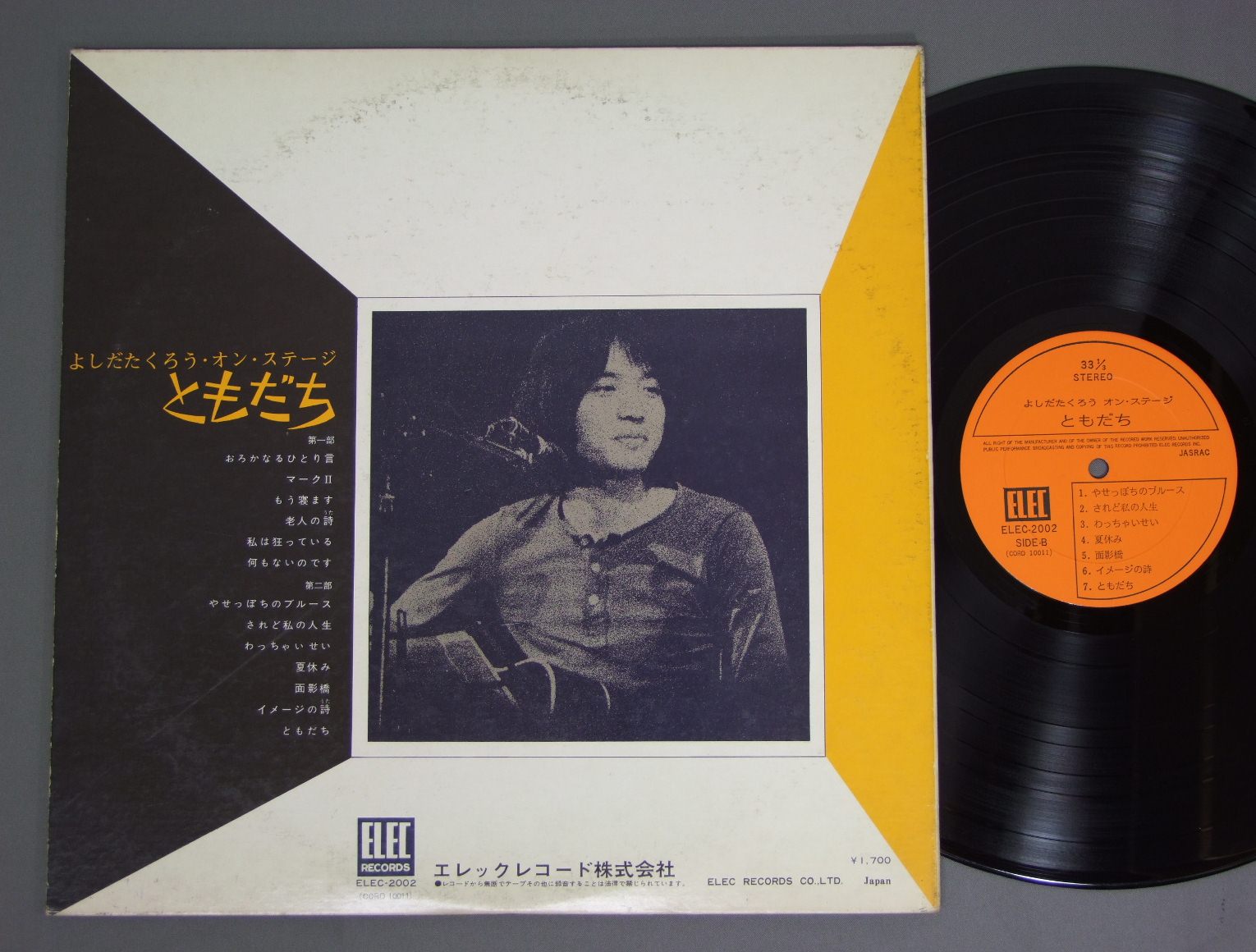 TAKURO YOSHIDA吉田拓郎/ON STAGEともだち ELEC2002 製造国:日本盤 / Media:LP外観:EX-盤の状態:EX 価格(税込):¥1,100(売約済) 送料 7inch:定形外郵便 360円~LP:定形外郵便 660円~送料は、注文の最終画面で確認頂けます。 > > TAKURO YOSHIDA/ON STAGE 外観 (EX-)特記事項:背によごれやスレ軽。表ジャケの上下ヘリスレ少し。表ジャケは薄いスレ多少有り。スリキズも少し。裏ジャケはスレよごれ多少有り。見開きはよごれは薄い感じ。ブックレットはあまりめくりヨレやよごれ等は無い感じ。外観EX-の共通説明:ダメージ軽度~多少。 中古品としては普通の状態。シミ、ヨゴレ、スレなど軽く~多少。 盤の状態 (EX)特記事項:薄いスリキズ・スレ軽くある感じ。プチ出そうな所は少しだけで、ほとんどが軽微なものの様子です。盤EXの共通説明:盤面のスリキズが薄いものが少し~軽度 音に出そうなものは無いように見える(軽微なソフトティック音は除く)。 Tweet それぞれの画像をクリックすると、大きい写真が見られます こちらの商品もお勧めです 660円 MANABU MIYAHARA宮原学 / RUSH ! 770円 MANI SHIRAKAWA白川奈美 / LULLABY SONGS BY NAMI遠くはなれて子守唄 白川奈美・子守唄の旅 440円 YASUHIRO SUZUKI鈴木康博 / SINCERELY 1,210円 CANDIESキャンディーズ / SOUSHUNPU 早春譜 990円 MARI AMACHI天地真理 / YOU&I小さな恋-ひとりじゃないの (あなたと私) 990円 MIKI ASAKURA麻倉未稀 / LOVE AGAIN 770円 ALL NIGHTERSオールナイターズ / 2nd ALBUMKIRAっとジェネレーション 770円 ALFEEアルフィー / PAGE ONE -13 PIECES OF ALFEE-