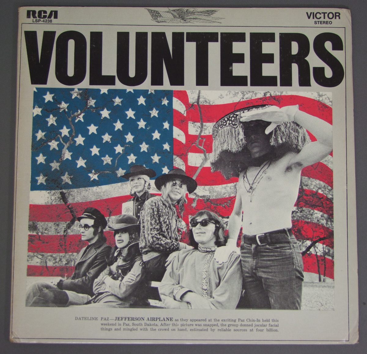 JEFFERSON AIRPLANE/VOLUNTEERS LSP4238 製造国:米国盤 / Media:LPMatrix:1E | 2E外観:EX盤の状態:EX+ 価格(税込):¥3,850(売約済) 送料 7inch:定形外郵便 360円~LP:定形外郵便 660円~送料は、注文の最終画面で確認頂けます。 > > JEFFERSON AIRPLANE/VOLUNTEERS 外観 (EX)特記事項:背下角や表ジャケの右上下角にスレやヨレやや有り。ジャケ表面は全体的にスレやスリキズ、よごれ等は少ない感じ。見開きの左側のヘリにスレ破れ有り。カードはあまりヨレやよごれの無い状態。外観EXの共通説明:ダメージが限定的。中古品としては保存状態がよい方。シミ、ヨゴレ、スレ 少し~軽度。 盤の状態 (EX+)特記事項:極薄いスリキズ・スレ少しある程度。音に出そうなものもなく一見してきれいな状態です。曲間など、静かなところを中心に聴いて見ましたが、チリノイズ少ないきれいな再生具合でした。盤EX+の共通説明:盤面の極薄いスリキズ、スレ少し程度 音に出そうなものは無いように見える(極軽微なソフトティック音は除く)。 Tweet それぞれの画像をクリックすると、大きい写真が見られます こちらの商品もお勧めです 5,500円 HUMIMGBIRD / HUMIMNGBIRD 6,050円 ALLMAN BROTHERS BAND / WIPE THE WINDOWS 7,700円 BLUE JAG / SAME TITLE 4,950円 BIG BROTHER AND THE HOLDING CO / BE A BROTHER 4,400円 AREA CODE 615 / TRIP IN THE COUNTRY 9,900円 BIG BROTHER AND HOLDING COMPAMY / SAME TITLE / MONO 2,750円 RASCALS / TIME PEACE RASCALS GREATEST HITS