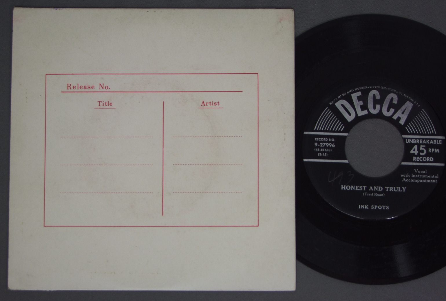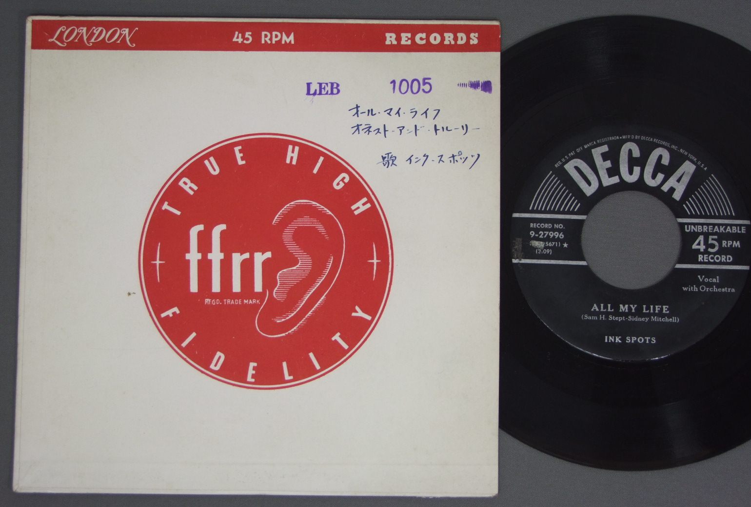 INK SPOTS/ALL MY LIFE DECCA 9-27996 製造国:米国盤 / Media:7inch外観:EX-盤の状態:VG+ 価格(税込):¥550(売約済) 送料 7inch:定形外郵便 360円~LP:定形外郵便 660円~送料は、注文の最終画面で確認頂けます。 > > INK SPOTS/ALL MY LIFE 外観 (EX-)特記事項:ハードタイプのLONDON RECORDSのカンパニースリーブ入り。薄いよごれ多少有り。外観EX-の共通説明:ダメージ軽度~多少。 中古品としては普通の状態。シミ、ヨゴレ、スレなど軽く~多少。 盤の状態 (VG+)特記事項:溝スレっぽさ、表面スレ多少有り。スリキズは少なめです。少し聴いてみましたが、チリ感は多少。音はしっかりなっている感じです。盤VG+の共通説明:盤面にスリキズが多少~やや有り、音に出そうなものも多少ある。 Tweet それぞれの画像をクリックすると、大きい写真が見られます こちらの商品もお勧めです 550円 GLADYS KNIGHT & THE PIPS / ALL OUR LOVE 1,320円 WINANS / DECISIONS 1,870円 CHURCH STREET FIVE / NITE WITH DADDY G 1,100円 S.O.S.BAND / TOO 1,100円 ARETHA FRANKLIN / WHO`S ZOOMIN` WHO 1,100円 GARRYGLENN / FEELS GOOD TO FEEL GOOD 1,100円 WINANS / LET MY PEOPLE GO 1,320円 FOUR TOPS / INDESTRUCTIBLE
