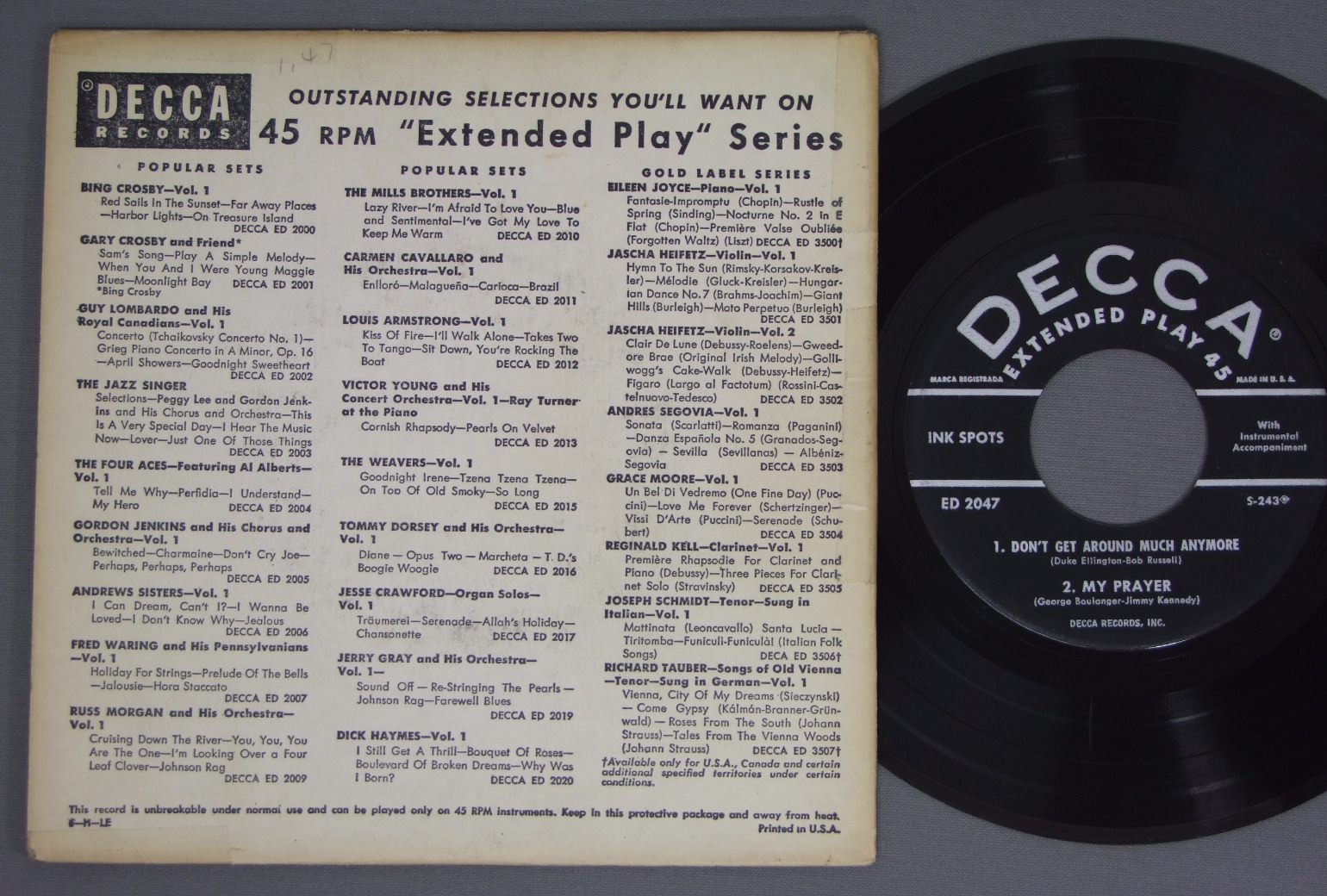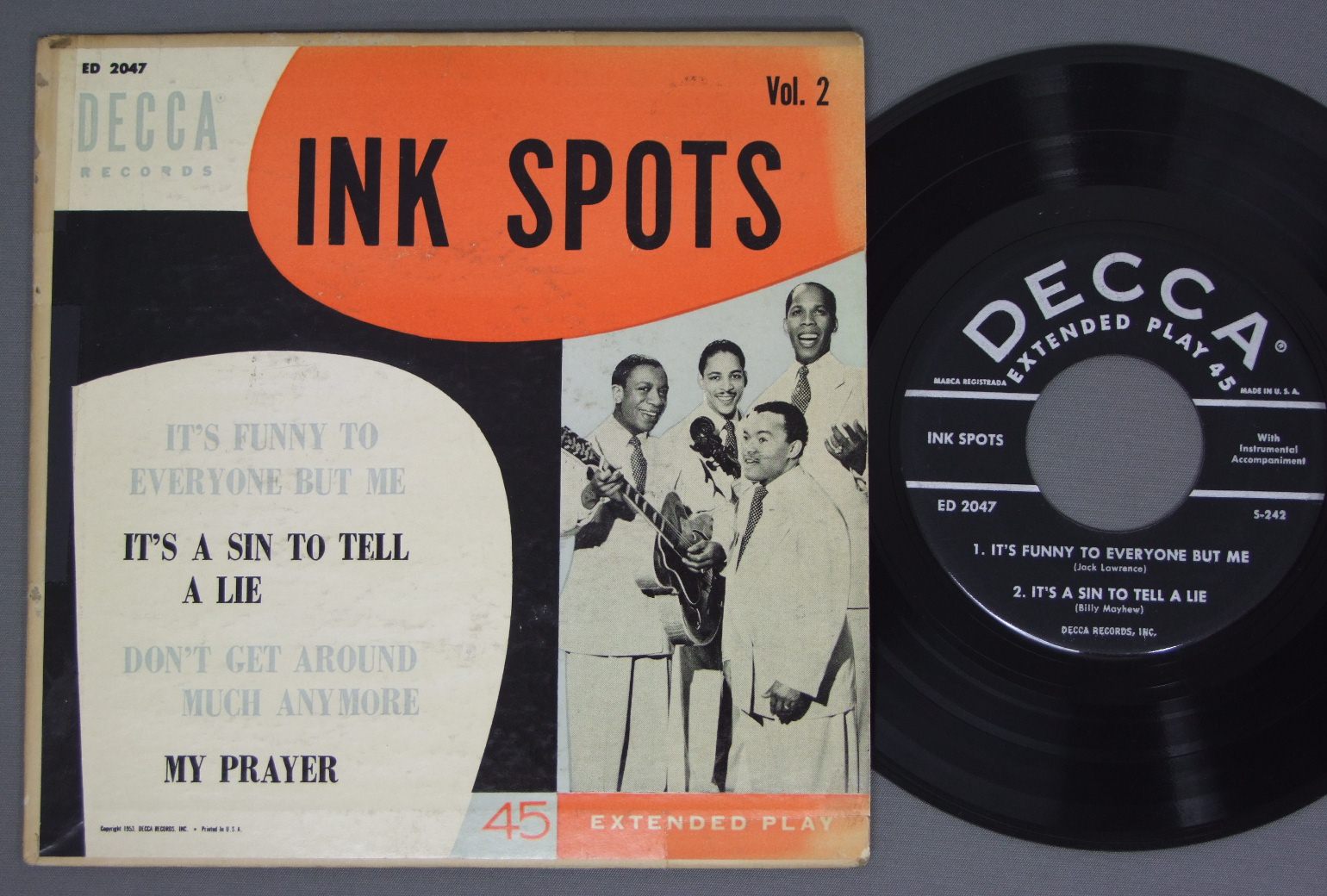 INK SPOTS/IT`S FUNNY TO EVERYONE BUT ME EP DECCA ED2047 製造国:米国盤 / Media:7inch外観:VG+盤の状態:VG+ 価格(税込):¥550(売約済) 送料 7inch:定形外郵便 360円~LP:定形外郵便 660円~送料は、注文の最終画面で確認頂けます。 > > INK SPOTS/IT`S FUNNY TO EVERYONE BUT ME EP 外観 (VG+)特記事項:背や上ヘリによごれ。背と上下ヘリに割れのテープ補修。表ジャケは右上に日焼け退色軽。スレよごれやや有り。裏ジャケは周辺部に日焼け。外観VG+の共通説明:ダメージやや有り。シミ、ヨゴレ、スレなど多少~やや多め。 盤の状態 (VG+)特記事項:薄いスリキズ・細かいスレ多少。プチ出そうな小キズ、線キズは数カ所で、全体的には軽微なものが中心です。少し聴いてみましたが、音自体はしっかりクリアーに鳴っているようでした。盤VG+の共通説明:盤面にスリキズが多少~やや有り、音に出そうなものも多少ある。 Tweet それぞれの画像をクリックすると、大きい写真が見られます こちらの商品もお勧めです 1,100円 T-CONNECTION / EVERYTHING IS COOL 1,100円 WILSON PICKETT / BEST OF WILSON PICKETT 1,320円 DIANA ROSS / LAST TIME I SAW HIM 1,100円 DAVID RUFFIN & EDDIE KENDRICK / RUFFIN & KENDRICK 1,100円 DIONNE WARWICK / RESERVATIONS FOR TWO 1,100円 J BLACKFOOT / CITY SLICKER 770円 JEFFREY OSBORNE / JEFFREY OSBORNE 990円 VARIOUS ATLANTIC LBL SOUL / SOUL EXPLOSION - PART 2 PROMO ONLY