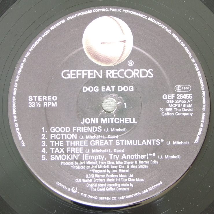 JONI MITCHELL/DOG EAT DOG GEF26455 製造国:英国盤 / Media:LPMatrix:A2|B1外観:EX盤の状態:EX+ 価格(税込):¥4,400(売約済) 送料 7inch:定形外郵便 360円~LP:定形外郵便 660円~送料は、注文の最終画面で確認頂けます。 > > JONI MITCHELL/DOG EAT DOG 外観 (EX)特記事項:背上でスレ。上下ヘリスレ多少有りますが軽め。背や上ヘリに日焼け退色?ジャケ表面は全体的にスレやスリキズ、よごれ等は薄い感じ。外観EXの共通説明:ダメージが限定的。中古品としては保存状態がよい方。シミ、ヨゴレ、スレ 少し~軽度。 盤の状態 (EX+)特記事項:極薄いスリキズ・スレ少しだけ。一見してきれいな状態です。曲間など、静かなところを中心に聴いてみましたが、チリノイズ少ないきれいな再生具合でした。盤EX+の共通説明:盤面の極薄いスリキズ、スレ少し程度 音に出そうなものは無いように見える(極軽微なソフトティック音は除く)。 Tweet それぞれの画像をクリックすると、大きい写真が見られます こちらの商品もお勧めです 4,950円 JONI MITCHELL / DOG EAT DOG 3,850円 NICO / THE END 5,060円 JONI MITCHELL / CHALK MARK IN A RAIN STORM 4,400円 JONI MITCHELL / DOG EAT DOG 7,700円 SUSAN MAUGHAN / I WANNA BE BOBBY`S GIRL 4,950円 SANDY DENNY / RENDEZVOUS