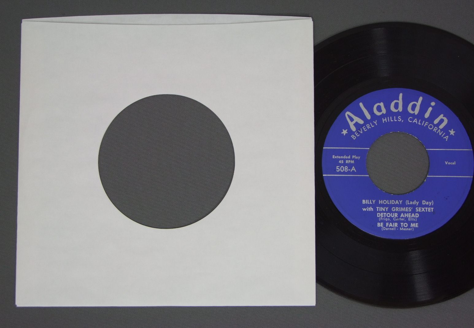 BILLY HOLIDAY WITH TINY GRIME`S SEXTET/DETOUR AHEAD EP ALADIN 508 製造国:米国盤 / Media:7inch盤の状態:EX 価格(税込):¥3,143(売約済) 送料 7inch:定形外郵便 360円~LP:定形外郵便 660円~送料は、注文の最終画面で確認頂けます。 > > BILLY HOLIDAY WITH TINY GRIME`S SEXTET/DETOUR AHEAD EP 盤の状態 (EX)特記事項:薄いスリキズ・スレ軽くある感じ。ほとんどが軽微なものの様子です。盤EXの共通説明:盤面のスリキズが薄いものが少し~軽度 音に出そうなものは無いように見える(軽微なソフトティック音は除く)。 その他:※画像では確認できない、上下ヘリ、背表紙、取り出し口を中心に状態表記しております。画像で確認出来る表裏ジャケ、レーベルの状態表記は省いている場合がありますので、そちらの状態は画像でご確認をお願い致します。携帯の方は一度PC等で写真をご確認の上ご入札下さいますよう、お願い申し上げます。 Tweet それぞれの画像をクリックすると、大きい写真が見られます こちらの商品もお勧めです 1,100円 BOBBY HACKETT / CREOLE COOKIN` 550円 GENE KRUPA / AT THE CLICK PHILADELPHIA 1947 440円 WOODY HERMAN AND ALLAN JONES / 1944 OCT & 1946 1,650円 HERBIE MANN / RETURNS TO THE VILLAGE GATE 1,100円 TEDDY BUCKNER AND THE ALL STARS / TEDDY BUCKNER AND THE ALL STARS 550円 GREATEST SWING BAND IN THE WORLD / IS BRITISH 550円 GORDON JENKINS / FRANCE 1,650円 BUNNY BERIGAN / PLAYS AGAIN