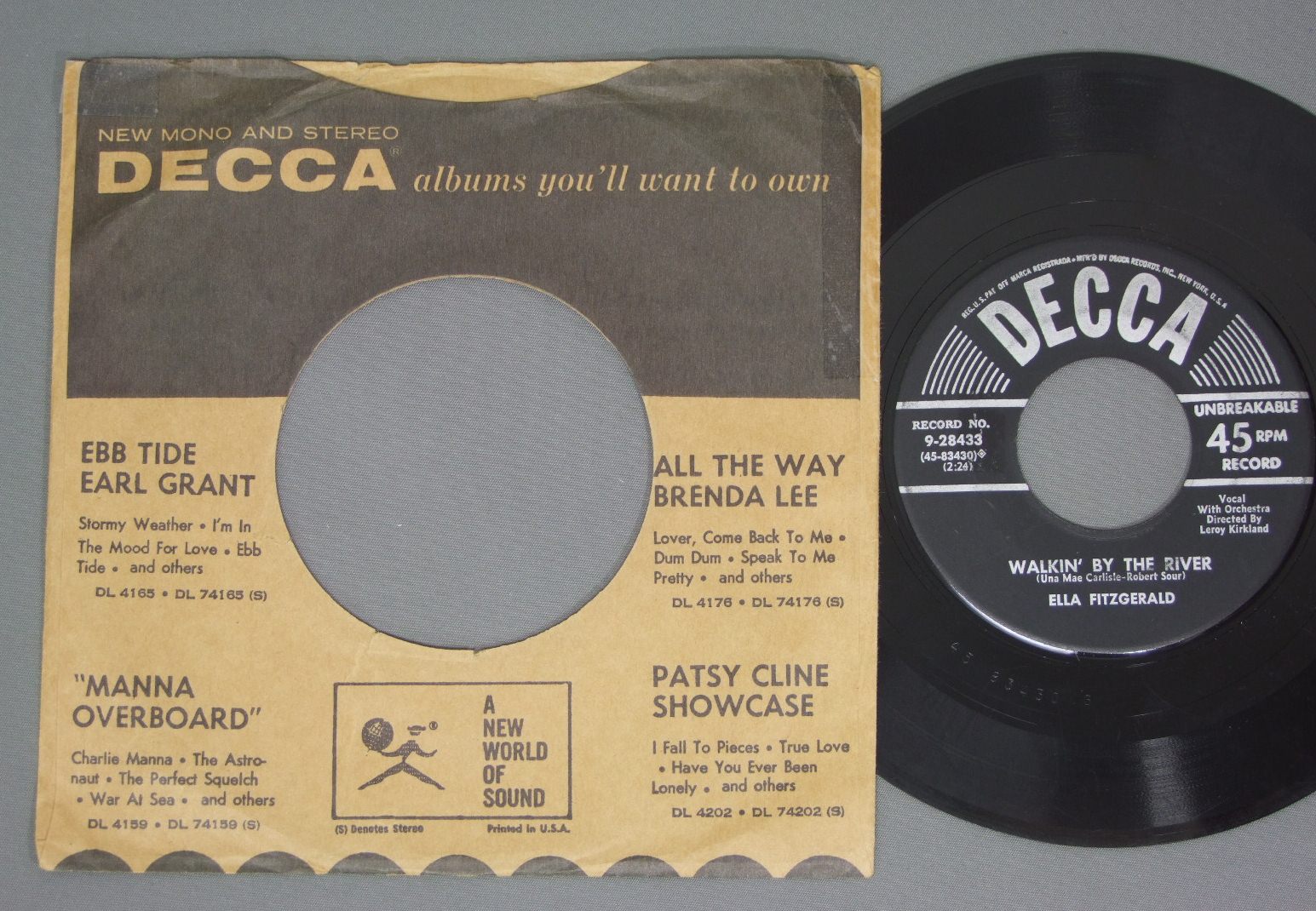 ELLA FITZGERALD/MY FAVORITE SONG DECCA 9-28433 製造国:米国盤 / Media:7inch外観:EX-盤の状態:VG+ 価格(税込):¥734(売約済) 送料 7inch:定形外郵便 360円~LP:定形外郵便 660円~送料は、注文の最終画面で確認頂けます。 > > ELLA FITZGERALD/MY FAVORITE SONG 外観 (EX-)特記事項:DECCAのカンパニースリーブ付き。テープ補修等少しありますが、全体的にヨレやよごれ等はあまり無い感じ。外観EX-の共通説明:ダメージ軽度~多少。 中古品としては普通の状態。シミ、ヨゴレ、スレなど軽く~多少。 盤の状態 (VG+)特記事項:薄いスリキズ・細かいスレ多少。プチ出そうな小キズ、線キズは数カ所で、全体的には軽微なものが中心です。少し聴いてみましたが、音自体はしっかりクリアーに鳴っているようでした。盤VG+の共通説明:盤面にスリキズが多少~やや有り、音に出そうなものも多少ある。 その他:※画像では確認できない、上下ヘリ、背表紙、取り出し口を中心に状態表記しております。画像で確認出来る表裏ジャケ、レーベルの状態表記は省いている場合がありますので、そちらの状態は画像でご確認をお願い致します。携帯の方は一度PC等で写真をご確認の上ご入札下さいますよう、お願い申し上げます。 Tweet それぞれの画像をクリックすると、大きい写真が見られます こちらの商品もお勧めです 770円 JIM GALLOWAY`S WEE BIG BAND / KEEP THE RHYTHM GOING 1,320円 MEL LEWIS & THE JAZZ ORCHESTRA / NATURALLY 3,850円 CHARLIE PARKER / HISTORICAL MASTERPIECES 3LP BOX 990円 MILESTONE JAZZSTARS (MCCOY TYNER - SONNY ROLLINS - RON CARTER - AL FOSTER) / IN CONCERT 1978 770円 RED NORVO / NORVO…NATURALLY ! 1,210円 PETER SPRAGUE / MUSICA DEL MAR 770円 HENRY RED ALLEN / HENRY RED ALLEN 770円 OLIVER LAKE & JUMP UP / PLUG IT