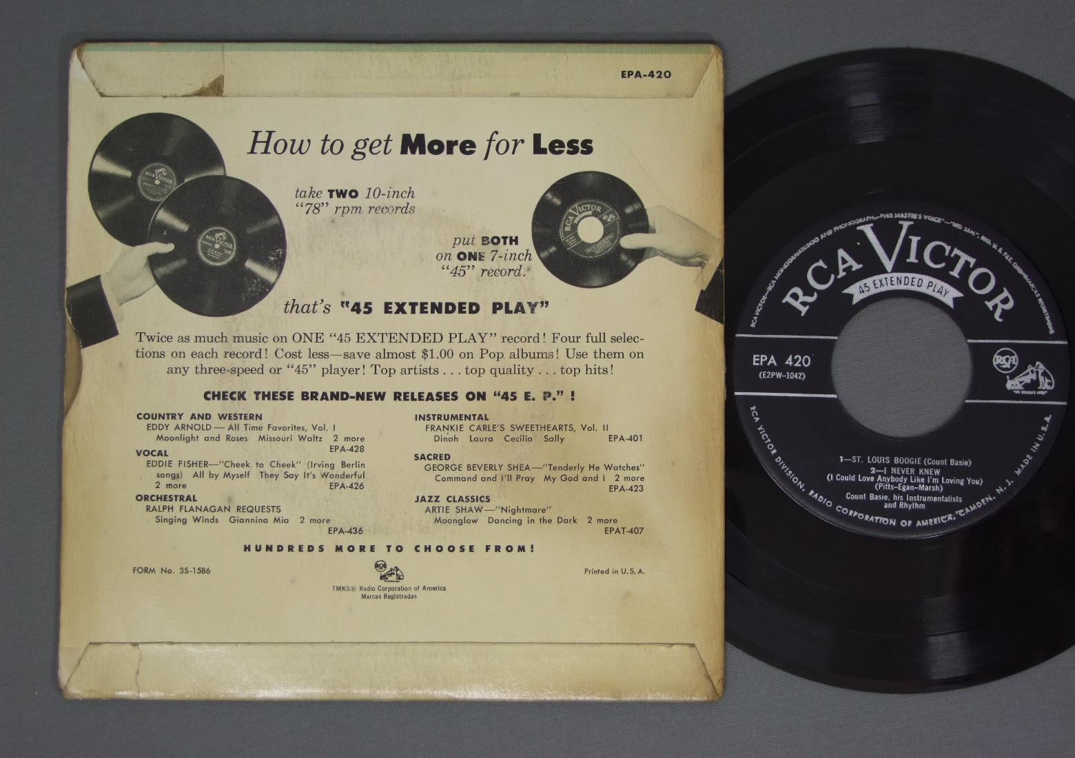 COUNT BASIE/MY BUDDY EP EPA420 製造国:米国盤 / Media:7inch外観:VG盤の状態:EX- 価格(税込):¥315(売約済) 送料 7inch:定形外郵便 360円~LP:定形外郵便 660円~送料は、注文の最終画面で確認頂けます。 > > COUNT BASIE/MY BUDDY EP 外観 (VG)特記事項:背抜けの補修有り。背や上下ヘリスレ多いです。ジャケ表面はレコードリングスレ等スレや剥がれ等多少有り。よごれも多少あります。裏ジャケ側はスレよごれや日焼け感有り。外観VGの共通説明:ダメージが見るからに多い。 盤の状態 (EX-)特記事項:薄いスリキズ・細かい表面スレ多少ある感じ。殆どが軽微なものの様子です。盤EX-の共通説明:盤面のスリキズが多少有り。音に出そうなものは殆ど無いように見える~さほど気にならないぐらいの軽いプチ数カ所程度。 その他:※画像では確認できない、上下ヘリ、背表紙、取り出し口を中心に状態表記しております。画像で確認出来る表裏ジャケ、レーベルの状態表記は省いている場合がありますので、そちらの状態は画像でご確認をお願い致します。携帯の方は一度PC等で写真をご確認の上ご入札下さいますよう、お願い申し上げます。 Tweet それぞれの画像をクリックすると、大きい写真が見られます こちらの商品もお勧めです 1,320円 YANK LAWSON / BIG YANK IS HERE ! 440円 WOODY HERMAN AND ALLAN JONES / 1944 OCT & 1946 1,210円 BUTCH THOMPSON - HAL SMITH & CHARLIE DEVORE / MILEMBERG JOYSCHARLIE DEVOREサイン付 990円 GORDON JENKINS / AMERICAN POEM 1,650円 HERBIE MANN / WATERBED 1,100円 LIONEL HAMPTON / GREAT LIONEL HAMPTON 1,540円 EARL FATHA HINES / EARL FATHA HINES 1,650円 WOODY HERMANウディ・ハーマン / THUNDERING HERDS 3LP BOX SETTHUNDERING HERDS 3枚組