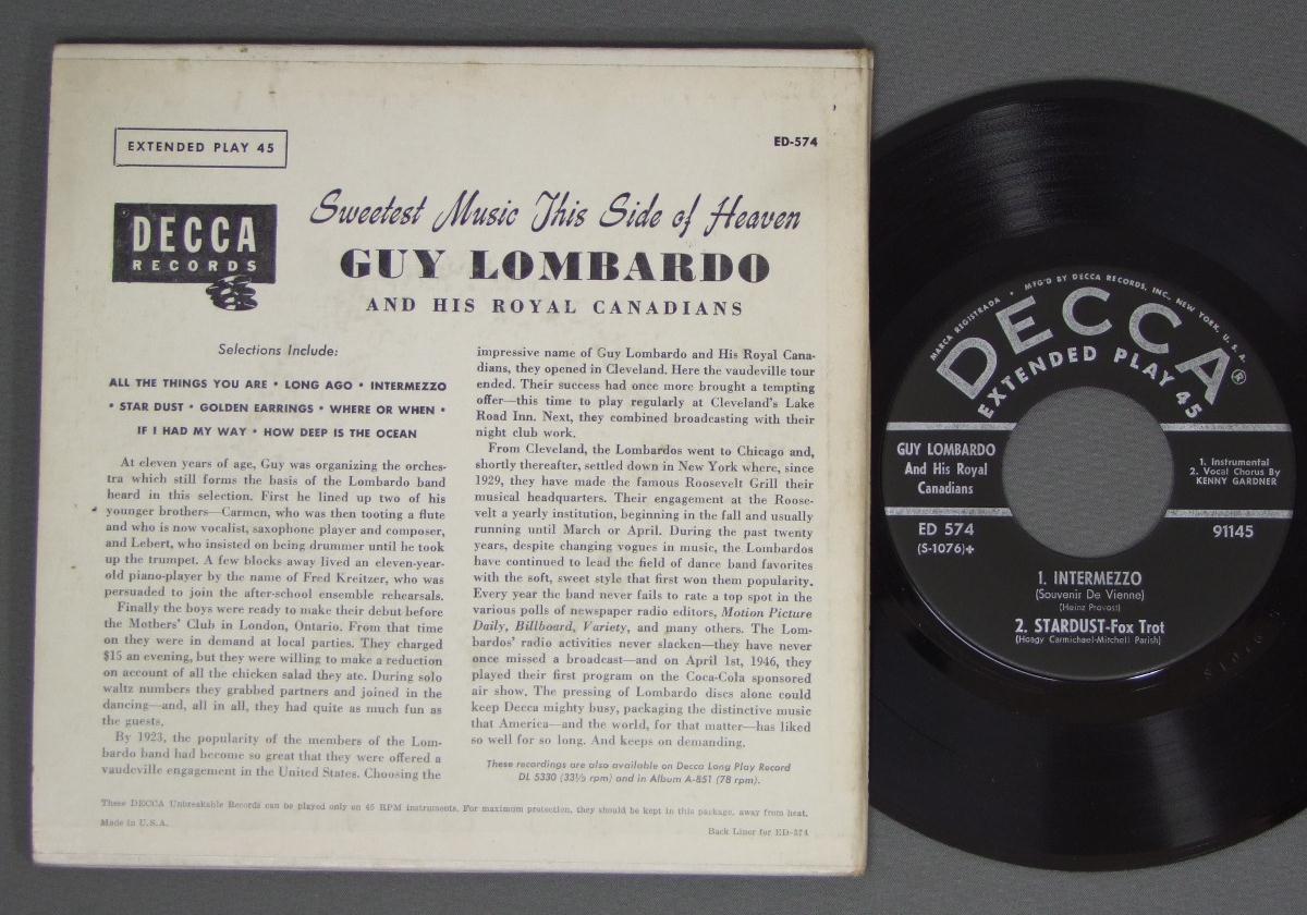 GUY LOMBARDO AND HIS ROYAL CANADIANS/SWEETEST MUSIC THIS SIDE OF HEAVEN ED574 製造国:米国盤 / Media:7inch外観:EX盤の状態:EX+ 価格(税込):¥1,100(売約済) 送料 7inch:定形外郵便 360円~LP:定形外郵便 660円~送料は、注文の最終画面で確認頂けます。 > > GUY LOMBARDO AND HIS ROYAL CANADIANS/SWEETEST MUSIC THIS SIDE OF HEAVEN 外観 (EX)特記事項:表裏ジャケに薄いレコードリングスレ等は多少ありますが、ジャケ表面は全体的にスレやスリキズ、よごれ等は薄い感じ。外観EXの共通説明:ダメージが限定的。中古品としては保存状態がよい方。シミ、ヨゴレ、スレ 少し~軽度。 盤の状態 (EX+)特記事項:薄いスリキズ・スレ少し。一見してきれいな状態です。盤EX+の共通説明:盤面の極薄いスリキズ、スレ少し程度 音に出そうなものは無いように見える(極軽微なソフトティック音は除く)。 その他:2枚組※画像では確認できない、上下ヘリ、背表紙、取り出し口を中心に状態表記しております。画像で確認出来る表裏ジャケ、レーベルの状態表記は省いている場合がありますので、そちらの状態は画像でご確認をお願い致します。携帯の方は一度PC等で写真をご確認の上ご入札下さいますよう、お願い申し上げます。 Tweet それぞれの画像をクリックすると、大きい写真が見られます こちらの商品もお勧めです 770円 MICHEL LEGRANDミッシェル・ルグラン / I LOVE PARIS 1,540円 LIONEL HAMPTON / LIONEL AT MARIBU BEACH 770円 GEORGE H BUCK JR-AI ROSE etc / NEW ORLEANS DAILY JAZZ 990円 JOE HOWARD TRIO / JAZZ.HIGHWAY 20 770円 SADAO WATANABE渡辺貞夫 / HOW`S EVERYTHING ( LIVE AT BUDOKAN)武道館ライブ 1,210円 WILD BILL DAVISON etc / CHICAGO JAZZ SUMMIT AUTOGRAPHEDCHICAGO JAZZ SUMMIT サイン付 990円 PERCY G.HUMPHREY / DANCING AT CONFECTIONERS HALL (AUTOGRAPHED COVER)DANCING AT CONFECTIONERS HALL サイン付 770円 BOBBY HACKETT MIFF MOLE MUGGSY SPANIER / JAZZ IN NEW YORK