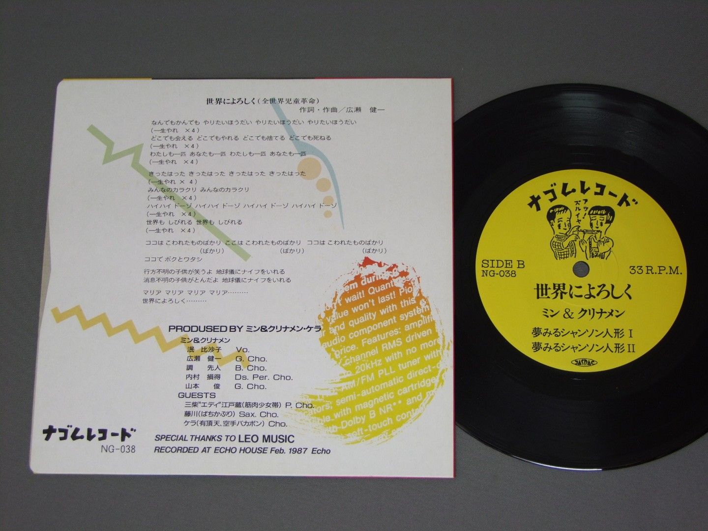 MIN AND CLINAMENミン&クリナメン/SAY HELLO TO THE WORLD世界によろしく NG038 製造国:日本盤 / Media:7inch外観:EX盤の状態:EX+ 価格(税込):¥1,885(売約済) 送料 7inch:定形外郵便 360円~LP:定形外郵便 660円~送料は、注文の最終画面で確認頂けます。 レコード検索 > 1980s–90s > MIN AND CLINAMEN/SAY HELLO TO THE WORLD 外観 (EX)特記事項:全体的にスレやスリキズ、よごれ等はあまり無い感じ。外観EXの共通説明:ダメージが限定的。中古品としては保存状態がよい方。シミ、ヨゴレ、スレ 少し~軽度。 盤の状態 (EX+)特記事項:極薄いスリキズ・スレ少しだけ。一見してきれいな状態です。盤EX+の共通説明:盤面の極薄いスリキズ、スレ少し程度 音に出そうなものは無いように見える(極軽微なソフトティック音は除く)。 Tweet それぞれの画像をクリックすると、大きい写真が見られます こちらの商品もお勧めです 1,320円 CAROLキャロル / 1975. 4. 13 1,980円 MODSモッズ / CORNER 1,320円 EARTH SHAKER / MIDNIGHT FLIGHT 990円 44 MAGUNAM44 マグナム / ACTOR 990円 COOLSクールス / COOLS ROCKABILLY CLUBクールス・ロカビリー・クラブ 1,210円 LOUDNESSラウドネス / RISKY WOMANリスキー・ウーマン 2,750円 LAUGHIN` NOSEラフィン・ノーズ / LIVE BLACK BOXLIVE BLACK BOX 1,320円 GERARDジェラルド / GERARDジェラルド