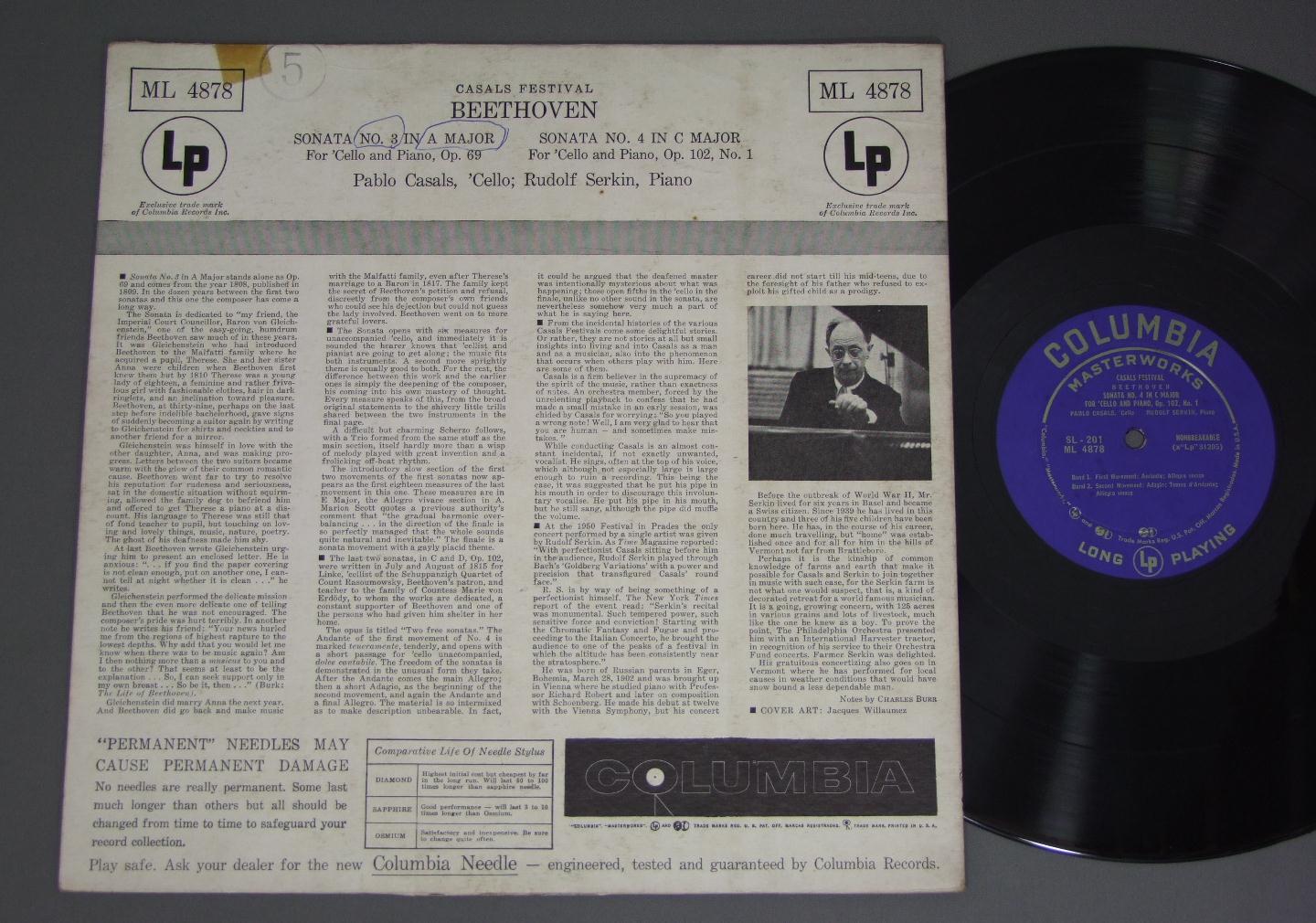 CASALS SERKINカザルス ゼルキン/CASALS FESTIVAL BEETHOVEN BLUE LBLベートーヴェン ソナタ ML4878 製造国:米国盤 / Media:LP外観:VG+盤の状態:EX 価格(税込):¥1,572(売約済) 送料 7inch:定形外郵便 360円~LP:定形外郵便 660円~送料は、注文の最終画面で確認頂けます。 > > CASALS SERKIN/CASALS FESTIVAL BEETHOVEN BLUE LBL 外観 (VG+)特記事項:角スレが少々。背を含むヘリスレも少々有り。レコード取り出し口上角で割れが少し。底ぬけも有り。裏ジャケの上部にテープ跡と、書込みやスタンプ跡も有り。全体的にスレや薄い感じのよごれ多めです。外観VG+の共通説明:ダメージやや有り。シミ、ヨゴレ、スレなど多少~やや多め。 盤の状態 (EX)特記事項:B面に2ヶ所プレスミスがあり、5回程度のポツ。他薄いスリキズ・スレ少しある程度。殆ど音に出そうなものもなく、有ってもソフトティック程度のものでしょう。一見して中々きれいな状態です。 盤EXの共通説明:盤面のスリキズが薄いものが少し~軽度 音に出そうなものは無いように見える(軽微なソフトティック音は除く)。 その他:BLUE LBL レーベルにシミ有り。 Tweet それぞれの画像をクリックすると、大きい写真が見られます こちらの商品もお勧めです 990円 PONTI-STRUGALA / HENRYK MELCER I KONCERT FORTEPIANOWY E-MOLL 2,860円 HARNONCOURT-LAJOS KOZMA-ROTRAUD / MONTEVERDI - L`ORFEO 990円 FISCHER - ARTUR SCHNABEL / MOZART - CONC. 990円 PAUL SACHER / ROUSSEL PETITE SUITE FOR ORCH.. 990円 DOSSE-LANDAU / MASSENET-PIANO CONC.-SAINT-SAENS-AFRICA-GOUNOD-FANTASY 1,540円 KARAJAN - BERLINER PHIL. / SCHUBERT - SYM. NO7 1,430円 SCHMIND-ISSERSTEDT / BEETHOVEN SYM. NO7 990円 DIE WIENER SOLISTEN / MENDELSSOHN-BARTHOLDY-SYM.