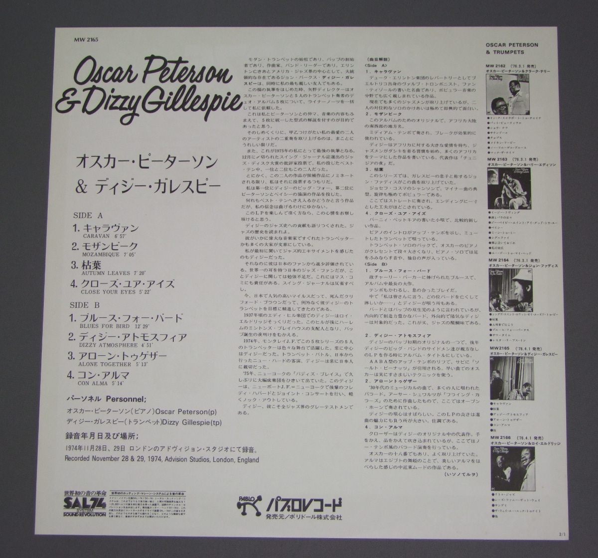 OSCAR PETERSON AND DIZZY GILLESPIE/SAME TITLE MW2165 製造国:日本盤 / Media:LP外観:EX-盤の状態:EX+ 価格(税込):¥550(売約済) 送料 7inch:定形外郵便 360円~LP:定形外郵便 660円~送料は、注文の最終画面で確認頂けます。 > > OSCAR PETERSON AND DIZZY GILLESPIE/SAME TITLE 外観 (EX-)特記事項:ジャケ表面は全体的にスレやスリキズは薄い感じ。表ジャケに薄いシミ多少有り。外観EX-の共通説明:ダメージ軽度~多少。 中古品としては普通の状態。シミ、ヨゴレ、スレなど軽く~多少。 盤の状態 (EX+)特記事項:極薄いスリキズ・スレ少しだけ。一見してきれいな状態です。盤EX+の共通説明:盤面の極薄いスリキズ、スレ少し程度 音に出そうなものは無いように見える(極軽微なソフトティック音は除く)。 Tweet それぞれの画像をクリックすると、大きい写真が見られます こちらの商品もお勧めです 1,210円 DEREK SMITHディレク・スミス / NEW SOILニュー・ソワール 1,210円 DUKE ELLINGTON WITH JIMMY JONESデューク・エリントン & ジミー・ジョーンズ / DUKE ELLINGTON`S MY PEOPLEマイ・ピープル 1,320円 RAMSEY LEWIS -BOB JAMES etcラムゼイ・ルイス - ボブ・ジェームス他 / ONE-NIGHT STAND A KEYBOARD EVENTワンナイト・スタンド-キーボード・イベント 1,650円 MASARU IMADA今田勝 / DAY IN THE PARADISEコーラルの涙 1,210円 CLARKE BOLAND BIG BAND / SAME TITEL 1,320円 MODERN JAZZ QUARTETMJQ / BASED ON BACH & THE BLUESバッハとブルースを基に 990円 CHARLIE PARKERチャーリー・パーカー / CHARLIE PARKER ON SAVOY VOL6チャーリー・パーカー・オン・サヴォイVOL6 770円 AIRTOアイアート・モレイラ / FREEフリー
