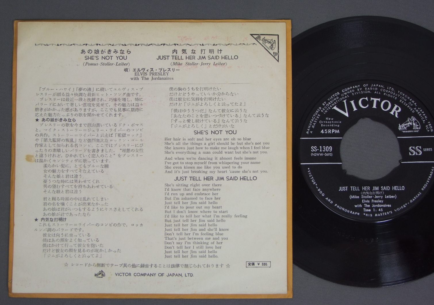 ELVIS PRESLEYエルビス・プレスリー/SHE`S NOT YOUあの娘がきみなら SS1309 製造国:日本盤 / Media:7inch外観:EX-盤の状態:VG+ 価格(税込):¥990 送料 7inch:定形外郵便 360円~LP:定形外郵便 660円~送料は、注文の最終画面で確認頂けます。 > > ELVIS PRESLEY/SHE`S NOT YOU 外観 (EX-)特記事項:シミ有り。外観EX-の共通説明:ダメージ軽度~多少。 中古品としては普通の状態。シミ、ヨゴレ、スレなど軽く~多少。 盤の状態 (VG+)特記事項:特記無し。コンディションリストを参照下さい。盤VG+の共通説明:盤面にスリキズが多少~やや有り、音に出そうなものも多少ある。 Tweet それぞれの画像をクリックすると、大きい写真が見られます こちらの商品もお勧めです 1,650円 ELVIS PLESLEYエルヴィス.プレスリー / ELVIS-THAT`S THE WAY IT ISエルヴィス.オン・ステージVOL.1 770円 ELVIS PRESLEYエルヴィス・プレスリー / ELVIS VOL2 A LEGENDARY PERFORMER + BOOKLETエルヴィス・プレスリーの歴史 VOL2 990円 ELVISエルヴィス / THIS IS ELVIS-SELECTIONS FROM THE ORIGINAL MOTION PICUTRE SOUNDTRACK映画 THIS IS ELVIS オリジナル・サウンドトラック 770円 RICK NELSONリック・ネルソン / ALBUM SEVEN BY RICKアルバム・セブン・リック 990円 VENTURESベンチャーズ / ROOK`N`ROLL GRAFFITIロックン・ロール・グラフィティ 1,210円 ELVIS PRESLEY / ELVIS IN PERSONプレスリー・イン・パーソン 770円 WANDA JACKSONワンダ・ジャクスン / WANDA JACKSON COUNTRY !ワンダ・ジャクスン・カントリー 1,210円 ELVIS PRESLEYエルヴィス・プレスリー / THAT`S THE WAY IT ISこの胸のときめきを