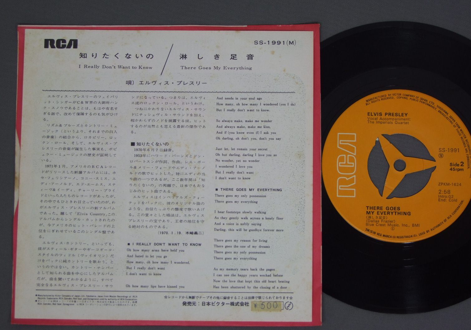 ELVIS PRESLEYエルビス・プレスリー/I REALLY DON`T WANT TO KNOW知りたくないの SS1991 製造国:日本盤 / Media:7inch外観:VG+盤の状態:EX 価格(税込):¥770 送料 7inch:定形外郵便 360円~LP:定形外郵便 660円~送料は、注文の最終画面で確認頂けます。 レコード検索 > SWING/BIG BAND > ELVIS PRESLEY/I REALLY DON`T WANT TO KNOW 外観 (VG+)特記事項:裏ジャケにシミやよごれ。外観VG+の共通説明:ダメージやや有り。シミ、ヨゴレ、スレなど多少~やや多め。 盤の状態 (EX)特記事項:特記無し。コンディションリストを参照下さい。盤EXの共通説明:盤面のスリキズが薄いものが少し~軽度 音に出そうなものは無いように見える(軽微なソフトティック音は除く)。 Tweet それぞれの画像をクリックすると、大きい写真が見られます こちらの商品もお勧めです 1,650円 ELVIS PLESLEYエルヴィス.プレスリー / ELVIS-THAT`S THE WAY IT ISエルヴィス.オン・ステージVOL.1 770円 WANDA JACKSONワンダ・ジャクスン / WANDA JACKSON COUNTRY !ワンダ・ジャクスン・カントリー 990円 VENTURESベンチャーズ / ROOK`N`ROLL GRAFFITIロックン・ロール・グラフィティ 880円 ELVISエルヴィス・プレスリー / THAT`S THE WAY IT ISこの胸のときめきを/映画「エルヴィス・オン・ステージ」主題歌集 990円 RICK NELSONリック・ネルソン / ALBUM SEVEN BY RICKアルバム・セブン・バイ・リック 1,320円 ELVIS PRESLEY / THAT`S THE WAY IT ISこの胸のときめきを 770円 VARIOUS ARTISTS / YESTERDAY`S HITSイエスタデイズ・ヒッツ 660円 PAUL ANKAポール・アンカ / BEST OF PAUL ANKAポール・アンカのすべて