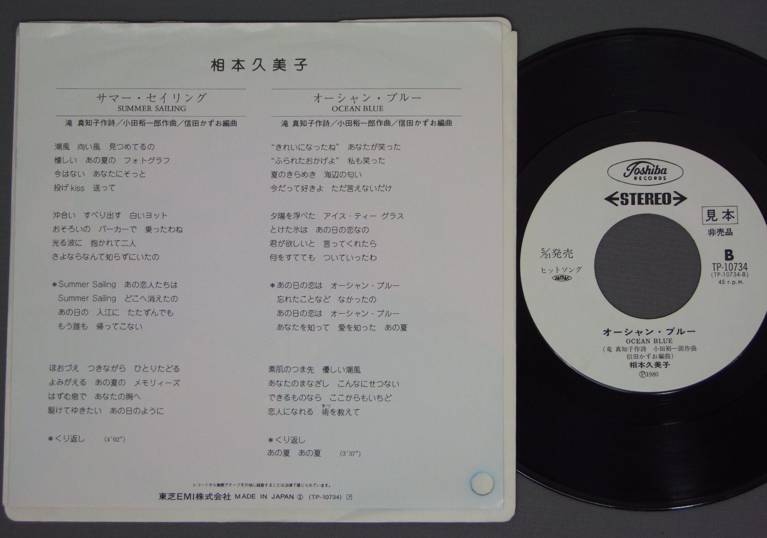 相本久美子/ サマー・セイリング TP10734 製造国:日本盤 / Media:7inch外観:EX-盤の状態:EX+ 価格(税込):¥330(売約済) 送料 7inch:定形外郵便 360円~LP:定形外郵便 660円~送料は、注文の最終画面で確認頂けます。 > > / 外観 (EX-)特記事項:ヨレやよごれ等は少ない感じ。右下のパンチ穴。外観EX-の共通説明:ダメージ軽度~多少。 中古品としては普通の状態。シミ、ヨゴレ、スレなど軽く~多少。 盤の状態 (EX+)特記事項:薄いスリキズ・スレ少し。一見してきれいな状態です。盤EX+の共通説明:盤面の極薄いスリキズ、スレ少し程度 音に出そうなものは無いように見える(極軽微なソフトティック音は除く)。 その他:白見本盤 Tweet それぞれの画像をクリックすると、大きい写真が見られます こちらの商品もお勧めです 990円 TOMOKO TAKABE高部知子 / AMEAGARI雨・ア・ガ・リ 1,210円 HIROMI IWASAKI岩崎宏美 / ROMANTIC CONCERT 2ロマンティック・コンサート2 + ピンナップ付 770円 SEIKO MATSUDA松田聖子 / CANDYキャンディー 1,320円 MIKI ASAKURA麻倉未稀 / LOVE AGAIN 770円 CHIEMI KAI甲斐智枝美 / WINK ( 1st ALBUM )ウインク 880円 MOMOE YAMAGUCHI山口百恵 / 16s THEME16才のテーマ 990円 PINK LADYピンク・レディー / BYE BYE CARNIVALバイ・バイ・カーニバル 1,210円 PINK LADYピンク・レディー / `78 JUMPING SUMMER CARNIVAL`78 ジャンピング・サマー・カーニバル