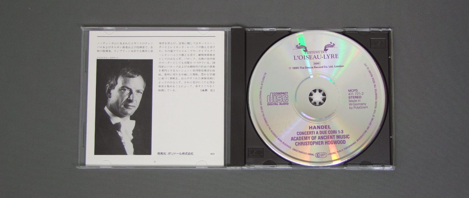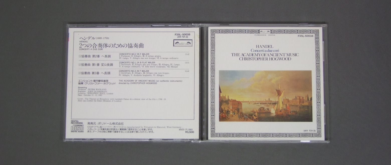 HOGWOODホグウッド/HANDEL CONCERTI A DUE CORI2つの合奏体のための協奏曲 F35L50038 製造国:日本盤 / Media:CD外観:EX盤の状態:EX+ 価格(税込):¥1,100 送料 7inch:定形外郵便 360円~LP:定形外郵便 660円~送料は、注文の最終画面で確認頂けます。 > > HOGWOOD/HANDEL CONCERTI A DUE CORI 外観 (EX)特記事項:背にシミ。三つ折のカード・タイプジャケ。見開き側にシミが少し。全体的にはヨレやよごれ等は少ない感じ。ケース底のジャケにもシミ有り。外観EXの共通説明:ダメージが限定的。中古品としては保存状態がよい方。シミ、ヨゴレ、スレ 少し~軽度。 盤の状態 (EX+)特記事項:微細な擦り傷が少々。きれいな感じの盤面です。盤EX+の共通説明:盤面の極薄いスリキズ、スレ少し程度 音に出そうなものは無いように見える(極軽微なソフトティック音は除く)。 その他:盤はドイツ製 Tweet それぞれの画像をクリックすると、大きい写真が見られます こちらの商品もお勧めです 1,540円 HAGER - MOZAARTEUM ORCHESTER SALZBURGレオポルト・ハーガー - ザルツブルク・モーツァルテウム管弦楽団 / MOZART - THAMOS KING OF EGYPT 990円 TALICH - CZECH PHILHARMONIC ORCH.ターリッヒ - チェコ・フィルハーモニー管弦楽団 / DVORAK - STABAT MATERドヴォルザーク - スターバト・マーテル 990円 KLENPERER - PHILHARMONIA ORCH.クレンペラー - フィラデルフィア管弦楽団 / KLEMPERER CONDUCTS MORE WARGNERクレンペラー ワーグナー名曲集 1,760円 BOHM - WIENER PHILHARMONIKERボーム - ウィーン・フィル / BEETHOVEN - SYMPHONY NO9 2LP BOXベートーヴェン交響曲第9番 2枚組 990円 WIENNA PHILHARMONIC WIND GROUPウィーン・フィルハーモニー管弦楽団グループ / MOZART - DIVERTOMENTO モーツァルト - 喜遊曲 1,540円 WALTER - COLUMBIA SYMPHONY ORCHESTRAワルター - コロンビア交響楽団 / MAHLER - SYMPHONY NO1マーラー交響曲第1番 990円 PREVIN - LONDON SYMPHONY ORCHESTRAプレヴィン - ロンドン交響楽団 / BEETHOVEN - SYMPHONY NO5ベートーヴェン - 交響曲第5番 1,540円 LAWRENCE FOSTER - HOUSTON SYMPHONY ORCHESTRAローレンス・フォスター - ヒューストン交響楽団 / PAUL CHIHARA - SYMPHONY IN CELEBRATIONポール・チハラ - SYMPHONY IN CELEBRATION