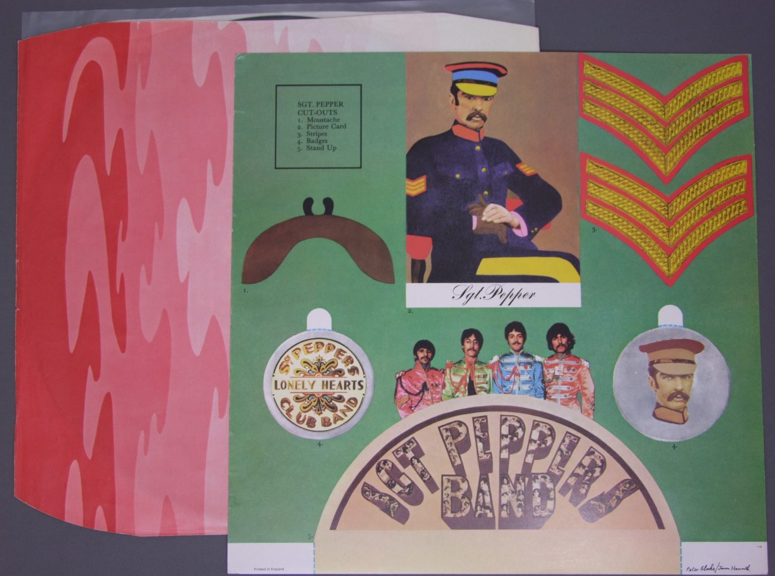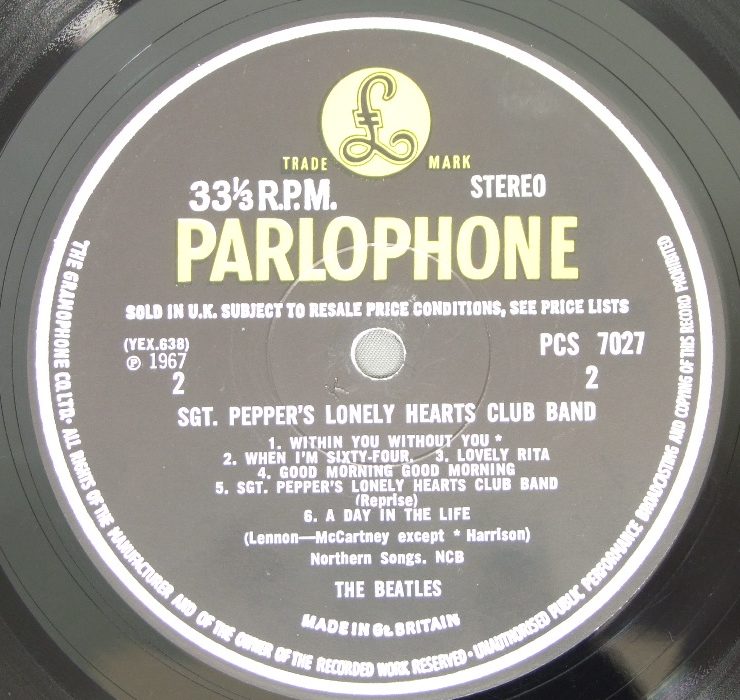 BEATLES/SGT. PEPPERS STEREO PCS7027 製造国:英国盤 / Media:LPMatrix: -1 | -1外観:EX盤の状態:EX- 価格(税込):¥9,350(売約済) 送料 7inch:定形外郵便 360円~LP:定形外郵便 660円~送料は、注文の最終画面で確認頂けます。 > > BEATLES/SGT. PEPPERS STEREO 外観 (EX)特記事項:角スレ多め。背はやや幅広の感じ。スレや日焼け多少有り。ジャケ表面は全体的にコーティングのヨレシワは少なめ。スレやスリキズ等も薄い感じです。裏ジャケ側レコード取り出し口縁にヨレやや有り。見開きはスレやよごれ等は少ないようです。オリジナルインナーはあまりヨレ感は無い感じ。赤い方のサイドでスレや僅かな欠け有り。よごれ等はあまり無い感じ。カット・アウトのおまけは緑の薄いタイプ。やや後期のタイプです。外観EXの共通説明:ダメージが限定的。中古品としては保存状態がよい方。シミ、ヨゴレ、スレ 少し~軽度。 盤の状態 (EX-)特記事項:極薄いスリキズ・スレ少しある程度。A面冒頭に溝に沿う感じのスリキズが一本有りますが、2回ぐらい軽いプチが聞こえたぐらいで気にならない程度のものでした。他、音に出そうなものもなく一見してきれいな状態です。曲間など、静かなところを中心に聴いて見ましたが、スクラッチ系のチリっぽさが後ろの方でありますが、音もしっかりなっている感じです。盤EX-の共通説明:盤面のスリキズが多少有り。音に出そうなものは殆ど無いように見える~さほど気にならないぐらいの軽いプチ数カ所程度。 Tweet それぞれの画像をクリックすると、大きい写真が見られます こちらの商品もお勧めです 5,500円 GEORGE HARRISON / THIRTY THREE & 1/3 5,500円 GEORGE HARRISON / LIVING IN THE MATERIAL WORLD 4,950円 JOHN & YOKO - PLASTIC ONO BANDF / SOME TIME IN NEW YORK CITY 5,500円 BEATLES / AT THE HOLLYWOOD BOWL 5,500円 JOHN LENNON / SHAVED FISH