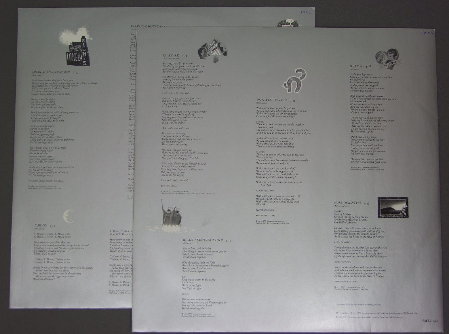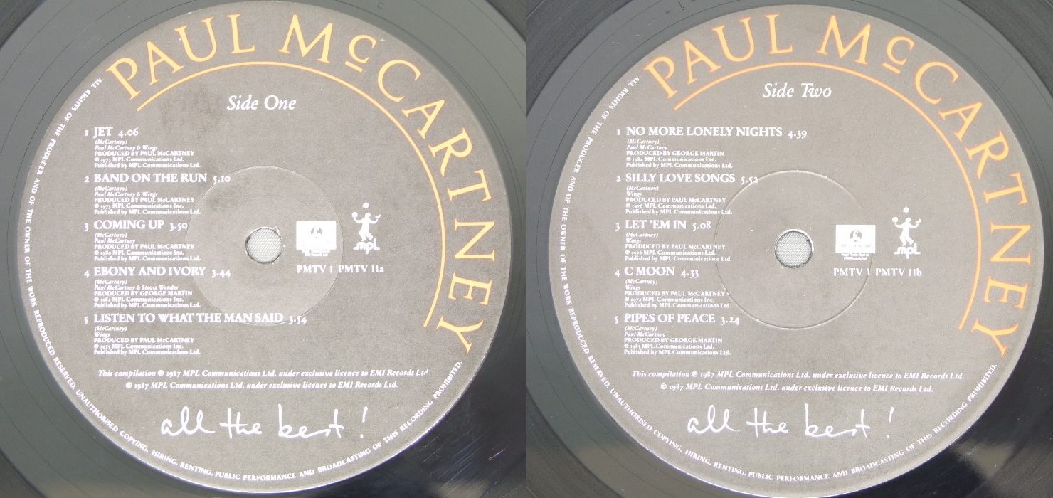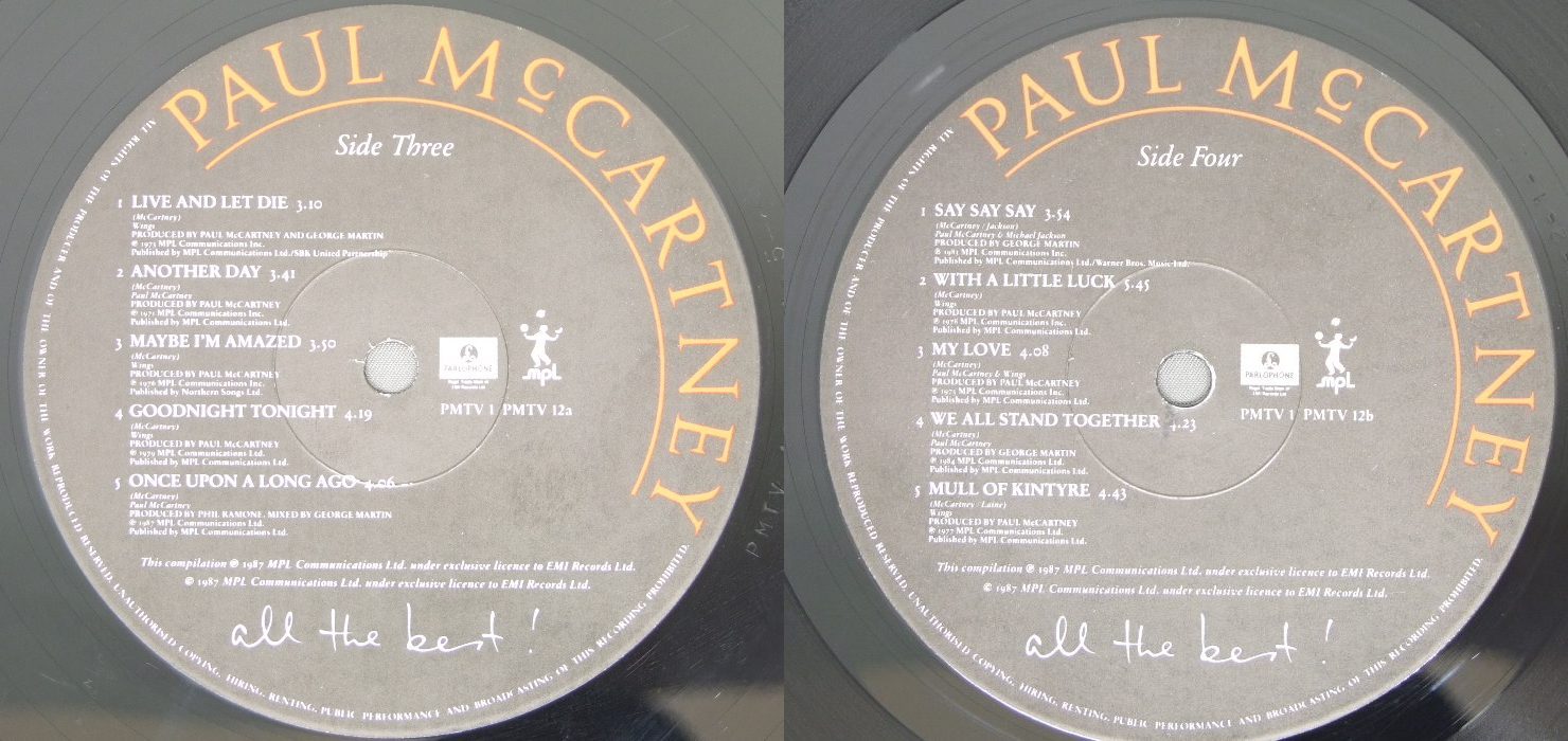 PAUL McCARTNEY/ALL THE BEST PMTV1 製造国:英国盤 / Media:LPMatrix:A-2-1-3 | B-1-1-1 | A-3-1-5 | B-2-1-3外観:EX-盤の状態:EX- 価格(税込):¥3,850(売約済) 送料 7inch:定形外郵便 360円~LP:定形外郵便 660円~送料は、注文の最終画面で確認頂けます。 > > PAUL McCARTNEY/ALL THE BEST 外観 (EX-)特記事項:角スレ多め。上下ヘリスレは濃い目のスレ多少有り。背スレ少し。ジャケ表面は薄いスレやスリキズ等は多少ありますが、よごれ等は薄い感じです。裏ジャケの背上付近にステッカー跡有り。見開きはスレやよごれ等は薄い感じ。インナーは角に折れシワ。抜けは無いです。外観EX-の共通説明:ダメージ軽度~多少。 中古品としては普通の状態。シミ、ヨゴレ、スレなど軽く~多少。 盤の状態 (EX-)特記事項:薄いスリキズ・細かい表面スレ軽くある感じ。少しぷちでそうな所もありますが、全体的には殆どが軽微なものの様子です。所々聴いてみましたが静かな部分で軽度のチリプチ。音自体はクリアーでしっかり鳴っています。盤EX-の共通説明:盤面のスリキズが多少有り。音に出そうなものは殆ど無いように見える~さほど気にならないぐらいの軽いプチ数カ所程度。 Tweet それぞれの画像をクリックすると、大きい写真が見られます こちらの商品もお勧めです 5,500円 GEORGE HARRISON / THIRTY THREE & 1/3 5,500円 JOHN LENNON / SHAVED FISH 4,950円 JOHN & YOKO - PLASTIC ONO BANDF / SOME TIME IN NEW YORK CITY 5,500円 BEATLES / AT THE HOLLYWOOD BOWL 5,500円 GEORGE HARRISON / LIVING IN THE MATERIAL WORLD