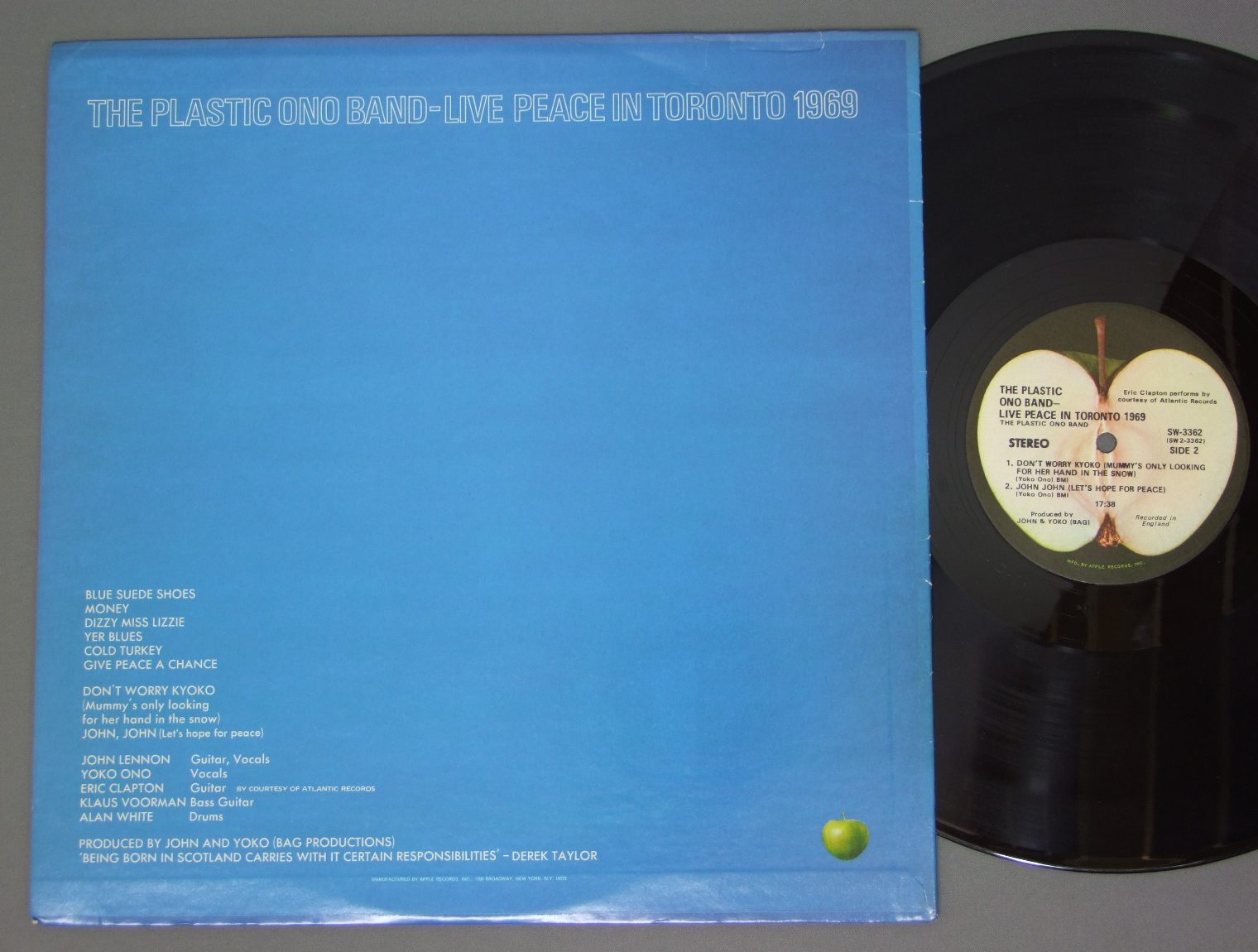 PLASTIC ONO BAND/LIVE PEACE IN TORONTO 1969 SW3352 製造国:米国盤 / Media:LP外観:EX盤の状態:EX- 価格(税込):¥488(売約済) 送料 7inch:定形外郵便 360円~LP:定形外郵便 660円~送料は、注文の最終画面で確認頂けます。 > > PLASTIC ONO BAND/LIVE PEACE IN TORONTO 1969 外観 (EX)特記事項:上ヘリにぶつかりヨレが少し。ジャケ表面は全体的にスレやスリキズ、よごれ等は薄い感じ。外観EXの共通説明:ダメージが限定的。中古品としては保存状態がよい方。シミ、ヨゴレ、スレ 少し~軽度。 盤の状態 (EX-)特記事項:A1中盤に周期的にプチが出る、線キズあります。曲に入る前のチューニング辺りで、曲に入れば聞こえない感じでした。他は薄いスリキズ、スレ軽度です。盤EX-の共通説明:盤面のスリキズが多少有り。音に出そうなものは殆ど無いように見える~さほど気にならないぐらいの軽いプチ数カ所程度。 その他:2nd レーベル Tweet それぞれの画像をクリックすると、大きい写真が見られます こちらの商品もお勧めです 550円 BEATLES / BEATLE TALK ( INTERVIEW 1964 & 66 ) UNOFFICAL RELEASE 770円 WINGS / VENUS AND MARS 1,870円 BEATLES / BEATLES 1967-1970 2,200円 JOHN LENNON / MASTER SHOWMAN ( ORIGNAL MASTER RECORDING LAST LIVE ) UNOFFICIAL RELEASE 990円 PAUL MCCARTNEY / MCCARTNEY 2 2,200円 PAUL McCARTNEY / PIPES OF PEACE 1,320円 WINGS / VENUS AND MARS 3,080円 JOHN LENNON - YOKO ONOジョン・レノン/ヨーコ・オノ / DOUBLE FANTASYダブル・ファンタジー