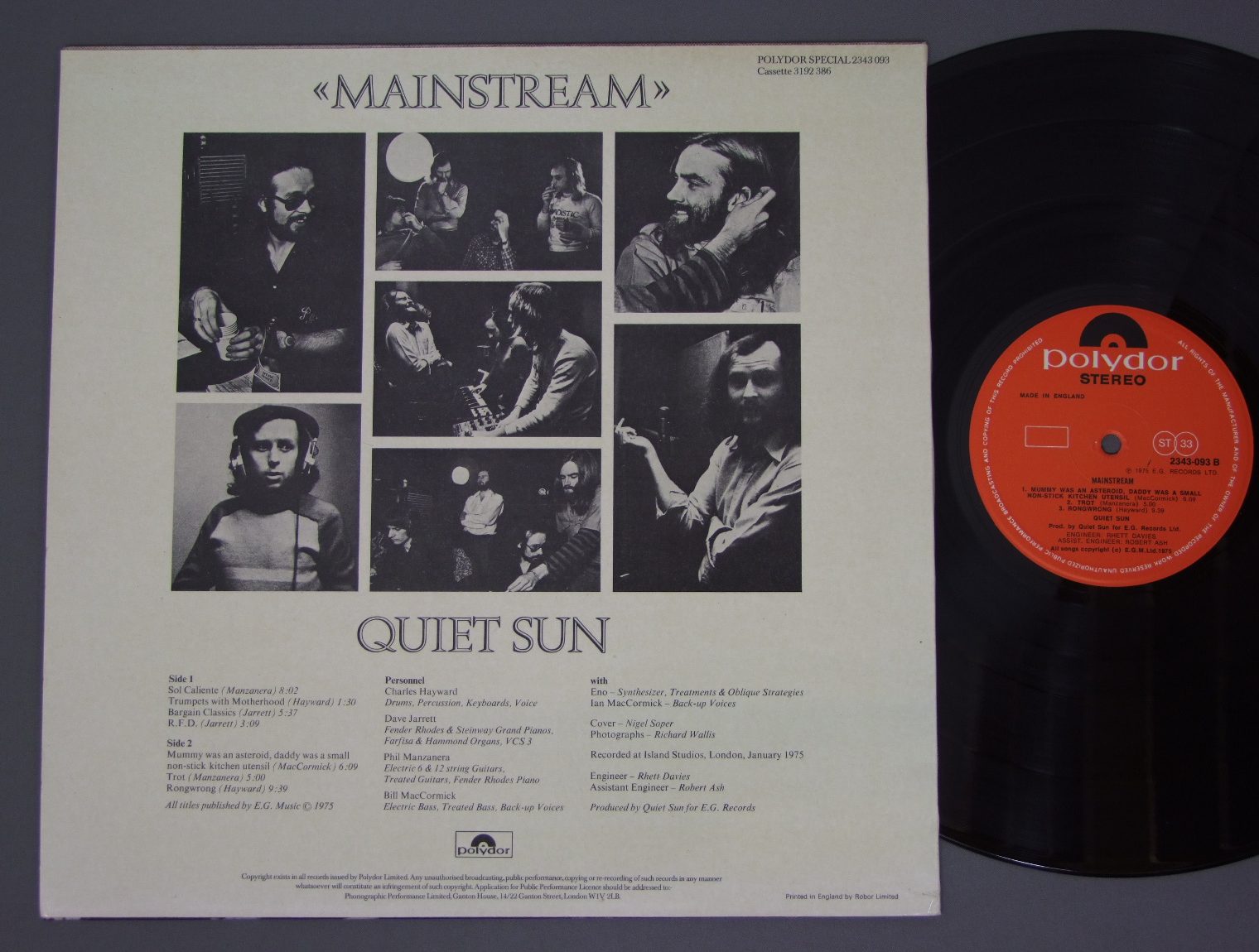 QUIET SUN/MAINSTREAM 2343 093 製造国:英国盤 / Media:LP外観:EX盤の状態:EX+ 価格(税込):¥1,430(売約済) 送料 7inch:定形外郵便 360円~LP:定形外郵便 660円~送料は、注文の最終画面で確認頂けます。 > > QUIET SUN/MAINSTREAM 外観 (EX)特記事項:厚手のコーティング仕様でジャケ表面は全体的にスレやスリキズ、よごれ等は薄い感じ。裏ジャケ側は多少日焼け感軽有り。外観EXの共通説明:ダメージが限定的。中古品としては保存状態がよい方。シミ、ヨゴレ、スレ 少し~軽度。 盤の状態 (EX+)特記事項:薄いスリキズ・スレ少し。一見してきれいな状態です。盤EX+の共通説明:盤面の極薄いスリキズ、スレ少し程度 音に出そうなものは無いように見える(極軽微なソフトティック音は除く)。 Tweet それぞれの画像をクリックすると、大きい写真が見られます こちらの商品もお勧めです 3,300円 RUSH / ALL THE WORLD`S STAGE 3,300円 PETER GABRIEL / IV 5,500円 RICK WAKEMAN / UNLEASHING THE TETHERED ONE THE 1974 NORTH AMERICAN TOUR 990円 EMERSON LAKE & PALMER / BRAIN SALAD SURGERY 4,400円 MOVE / CALIFORNIA MAN 440円 TIME MACHINE / PROJECT:TIME SCANNING PIC DISC 2,420円 ASIA / ONLY TIME WILL TELL ( LIVE IN PHILADELHIA USA 1982 ) UNOFFICIAL RELEASE 1,320円 EMARSON LAKE & PALMER / TARUKUS