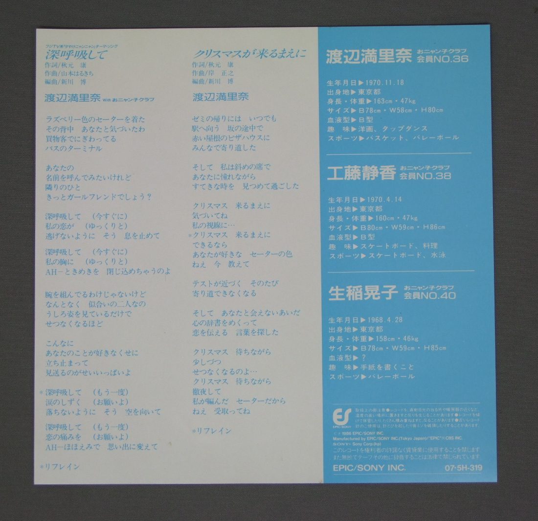 MARINA WATANABE渡辺満里奈/SHINKOKYU SHITE深呼吸して 07 5H319 製造国:日本盤 / Media:7inch外観:EX+盤の状態:EX+ 価格(税込):¥770 送料 7inch:定形外郵便 360円~LP:定形外郵便 660円~送料は、注文の最終画面で確認頂けます。 > > MARINA WATANABE/SHINKOKYU SHITE 外観 (EX+)特記事項:特記無し。コンディションリストを参照下さい。外観EX+の共通説明:中古としては美品、一見してきれいでダメージが軽微。シミ、ヨゴレ、スレ有っても僅か~少し。 盤の状態 (EX+)特記事項:極薄いスリキズ・スレ少し。一見してきれいな状態です。盤EX+の共通説明:盤面の極薄いスリキズ、スレ少し程度 音に出そうなものは無いように見える(極軽微なソフトティック音は除く)。 Tweet それぞれの画像をクリックすると、大きい写真が見られます こちらの商品もお勧めです 770円 SEIKO MATSUDA松田聖子 / SEIKO TOWN 440円 ERI E-AREA新田恵利 / ERI E-AREA 880円 SONOKO KAWAI河合その子 / SONOKOその子 1,210円 ONYANNKO CLUBおニャン子クラブ / DREAM CATALOGUE夢カタログ 770円 YUKO ISHIKAWA石川優子 / YUKO TOKIMEKU-KORO優子ときめくころ 2,640円 MINAKO HONDA本田美奈子 / MINAKO THE VIRGIN CONCERTMINAKO ザ・ヴァージン・コンサート 1,320円 PINK LADYピンク・レディー / PINK LADY-SUMMER FIRE `77ピンク・レディー-サマー・ファイア `77 550円 CHIEMI堀ちえみ / KAZE NO SASAYAKI風のささやき