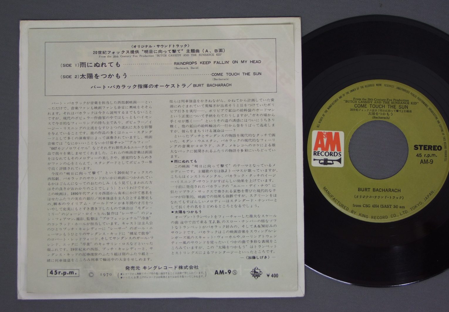 SOUNDTRACK BURT BACHARACHサントラ バート・バカラック/BUTCH CASSIDY & THE SUNDANCE KID明日に向かって撃て AM9 製造国:日本盤 / Media:7inch外観:EX盤の状態:EX- 価格(税込):¥330 送料 7inch:定形外郵便 360円~LP:定形外郵便 660円~送料は、注文の最終画面で確認頂けます。 > > SOUNDTRACK BURT BACHARACH/BUTCH CASSIDY & THE SUNDANCE KID 外観 (EX)特記事項:特記無し。コンディションリストを参照下さい。外観EXの共通説明:ダメージが限定的。中古品としては保存状態がよい方。シミ、ヨゴレ、スレ 少し~軽度。 盤の状態 (EX-)特記事項:A面前半部分にプレスミスがあり、周期的にポツポツと音に出ます。針飛びは有りませんでした。スリキズは少ないようです。盤EX-の共通説明:盤面のスリキズが多少有り。音に出そうなものは殆ど無いように見える~さほど気にならないぐらいの軽いプチ数カ所程度。 Tweet それぞれの画像をクリックすると、大きい写真が見られます こちらの商品もお勧めです 1,320円 JERRY GOLDSMITHジェリー・ゴールドスミス / STAR TREK THE MOTION PICTUREスター・トレック 1,210円 PETER OTOOLE % SOPHIA LORENピーター・オトール&ソフィア・ローレン / SOUNDTRACK MAN OF LA MANCHA映画 ラ・マンチャの男 440円 TV SONGテレビドラマ / ORETACHI NO KUNSHOH俺たちの勲章/太陽にほえろ 主題曲集 880円 平尾昌晃 水谷豊 / ドラマ 熱中時代-主演・水谷豊 770円 VANGELISヴァンゲリス / CHARIOTS OF FIREチャリオッツ・オブ・ファイアー 660円 RALPH BURNSラルフ・バーンズ / SOUND TRACK ALL THAT JAZZ映画オール・ザット・ジャズ 2,530円 M.DIETRCH-L. HARVEY etcマレーネ・ディートリッヒ-リリアン・ハーヴェイ 他 / EUROPEAN CINEMA MUSIC OF GOLDEN AGE + POSTERSオリジナル盤による戦前欧羅巴映画主題歌集 ドイツ篇-フランス篇 ポスター付 1,320円 無声映画鑑賞会 / おお活動大写真
