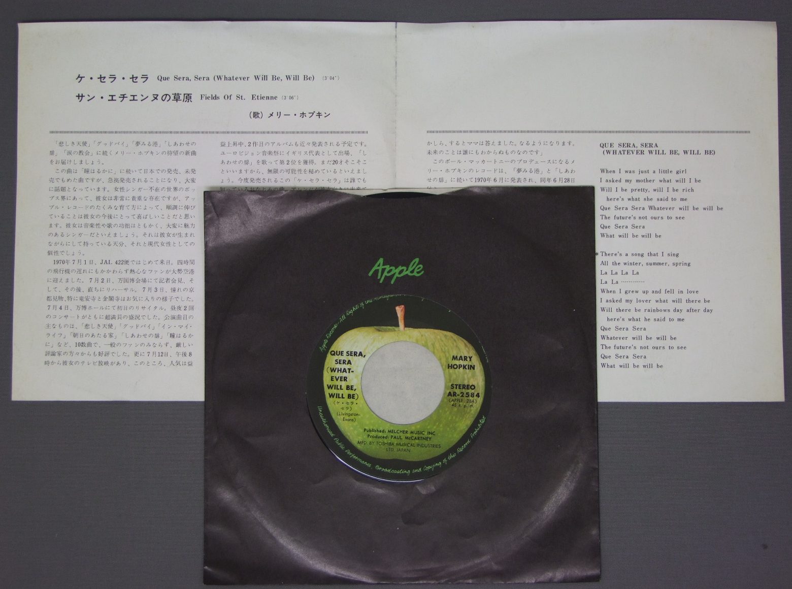 MARY HOPKIN/QUE SERA SERA WHATEVER WILL BE WILL BEケ・セラ・セラ AR2584 製造国:日本盤 / Media:7inch外観:EX盤の状態:EX+ 価格(税込):¥770(売約済) 送料 7inch:定形外郵便 360円~LP:定形外郵便 660円~送料は、注文の最終画面で確認頂けます。 > > MARY HOPKIN/QUE SERA SERA WHATEVER WILL BE WILL BE 外観 (EX)特記事項:特記無し。コンディションリストを参照下さい。外観EXの共通説明:ダメージが限定的。中古品としては保存状態がよい方。シミ、ヨゴレ、スレ 少し~軽度。 盤の状態 (EX+)特記事項:極薄いスリキズ・スレ少し。一見してきれいな状態です。盤EX+の共通説明:盤面の極薄いスリキズ、スレ少し程度 音に出そうなものは無いように見える(極軽微なソフトティック音は除く)。 Tweet それぞれの画像をクリックすると、大きい写真が見られます こちらの商品もお勧めです 1,210円 OLIVIA NEWTON-JOHNオリビア・ニュートン・ジョン / DON`T STOP BELIEVIN`たそがれの恋 770円 KIM WILDEキム・ワイルド / KIM WILDE誘惑のキム 550円 OLIVIA NEWTON-JOHNオリビア・ニュートンジョン / PHYSICAL虹色の扉 440円 PAT BENETARパット・ベネター / PRECIOUS TIMEプレシャス・タイム 1,650円 CHISTINE MCVIEクリスティン・マクヴィー / CHISTINE MCVIEクリスティン・マクヴィー 770円 PAT BENATARパット・べネター / GET NERVOUSゲット・ナーヴァス 1,320円 CYNDI LAUPERシンディ・ローパー / TRUE COLORSトゥルー・カラーズ 770円 YVETTE GIRAUDイベット・ジロー / ADIEU JAPONアデュー・ジャポン