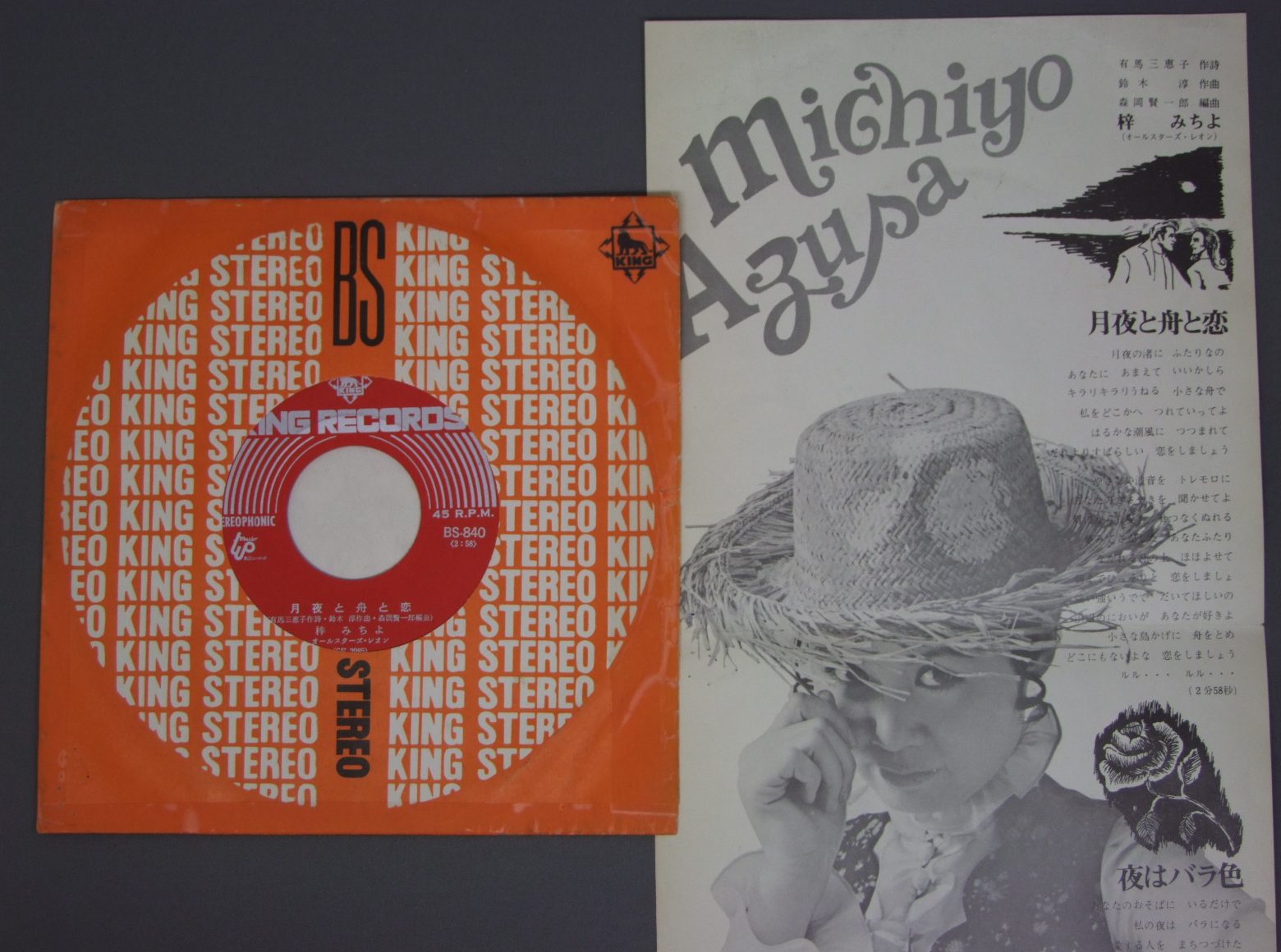 梓みちよ/ 月夜と舟と恋 BS840 製造国:日本盤 / Media:7inch外観:EX盤の状態:EX- 価格(税込):¥524(売約済) 送料 7inch:定形外郵便 360円~LP:定形外郵便 660円~送料は、注文の最終画面で確認頂けます。 > > / 外観 (EX)特記事項:軽いヨレ有り。外観EXの共通説明:ダメージが限定的。中古品としては保存状態がよい方。シミ、ヨゴレ、スレ 少し~軽度。 盤の状態 (EX-)特記事項:薄いスリキズ・細かい表面スレ多少ある感じ。殆どが軽微なものの様子です。盤EX-の共通説明:盤面のスリキズが多少有り。音に出そうなものは殆ど無いように見える~さほど気にならないぐらいの軽いプチ数カ所程度。 Tweet それぞれの画像をクリックすると、大きい写真が見られます こちらの商品もお勧めです 990円 YOSHIO TABATA田端義夫 / SHIMA SODACHI島育ち 880円 KEN TSUMURA津村謙 / KAYO ALBUM津村謙歌謡アルバム 660円 AKIRA MATSUDAIRA松平晃 / CIRCUS SONG懐かしの針音 松平晃 サーカスの唄 880円 YUKIO HASHI橋幸夫 / FROM ITAKOGASA TO MUHYO黄金の声/潮来笠から霧氷まで 880円 TOSHIRO OKAMOTO岡本敦朗 / SHIROI HANA NO SAKUKORO白い花の咲く頃 880円 上原敏 / 憶い出の任侠・時代歌謡-ポリドール SP原盤 シリーズ 770円 HIBARI MISORA美空ひばり / 1932-35芸能生活30周年記念 歌謡曲50年 第2集 ( 昭和7- 10年) 1,210円 HACHIRO KASUGA春日八郎 / HACHIRO KASUGA HIT ALBUM春日八郎 -魅力のすべて-