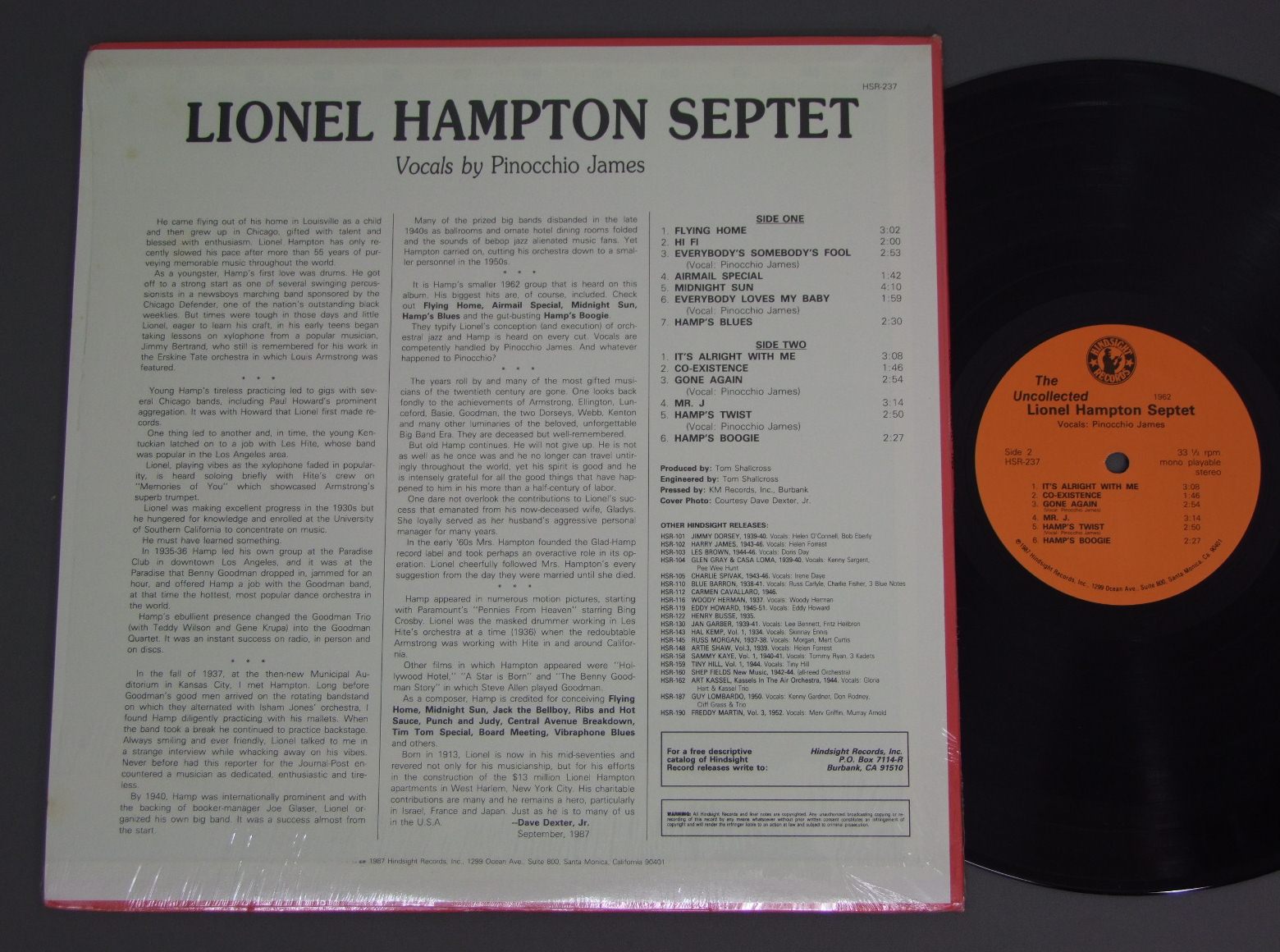 LIONEL HAMPTON SEPTET VOCALS BY PINOCCHIO JAMES/1962 HSR237 製造国:米国盤 / Media:LP外観:EX+盤の状態:EX 価格(税込):¥209(売約済) 送料 7inch:定形外郵便 360円~LP:定形外郵便 660円~送料は、注文の最終画面で確認頂けます。 > > LIONEL HAMPTON SEPTET VOCALS BY PINOCCHIO JAMES/1962 外観 (EX+)特記事項:特記無し。コンディションリストを参照下さい。外観EX+の共通説明:中古としては美品、一見してきれいでダメージが軽微。シミ、ヨゴレ、スレ有っても僅か~少し。 盤の状態 (EX)特記事項:薄いスリキズ・スレ少しある感じ。一見してきれいな印象です。盤EXの共通説明:盤面のスリキズが薄いものが少し~軽度 音に出そうなものは無いように見える(軽微なソフトティック音は除く)。 Tweet それぞれの画像をクリックすると、大きい写真が見られます こちらの商品もお勧めです 770円 ARTIE SHAW ORCHESTRA / BORN TO SWING 770円 LIONEL HAMPTON / NEWPORT UPROAR 1,540円 LIONEL HAMPTON / THERE IT IS ! 990円 MEL LEWIS AND THE JAZZ ORCHESTRA / NATURALLY 1,210円 YANK LAWSON & BOB HAGGART / PLAYS COLE PORTER AUTOGREPHED (RALPH SUTTON)PLAYS COLE PORTER (RALPH SUTTON サイン付) 770円 LES BROWN & HIS BAND OF RENOWN / SWINGIN` SOUND 1,320円 LIONEL HAMPTON AND HIS GIANTS / LIVE IN EMMEN - HOLLAND 1,100円 BENNY GOODMAN / ESSENTIAL